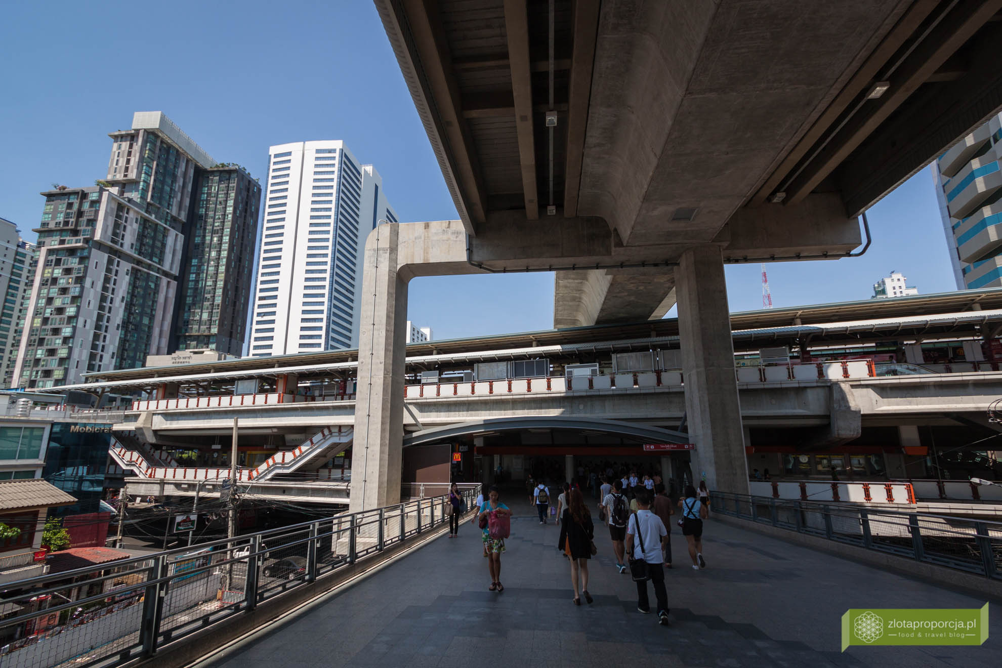 Skytrain w Bangkoku to szybki i niezawodny środek komunikacji. Nie stoi w korkach, ponieważ skytrain porusza się ponad ulicami.