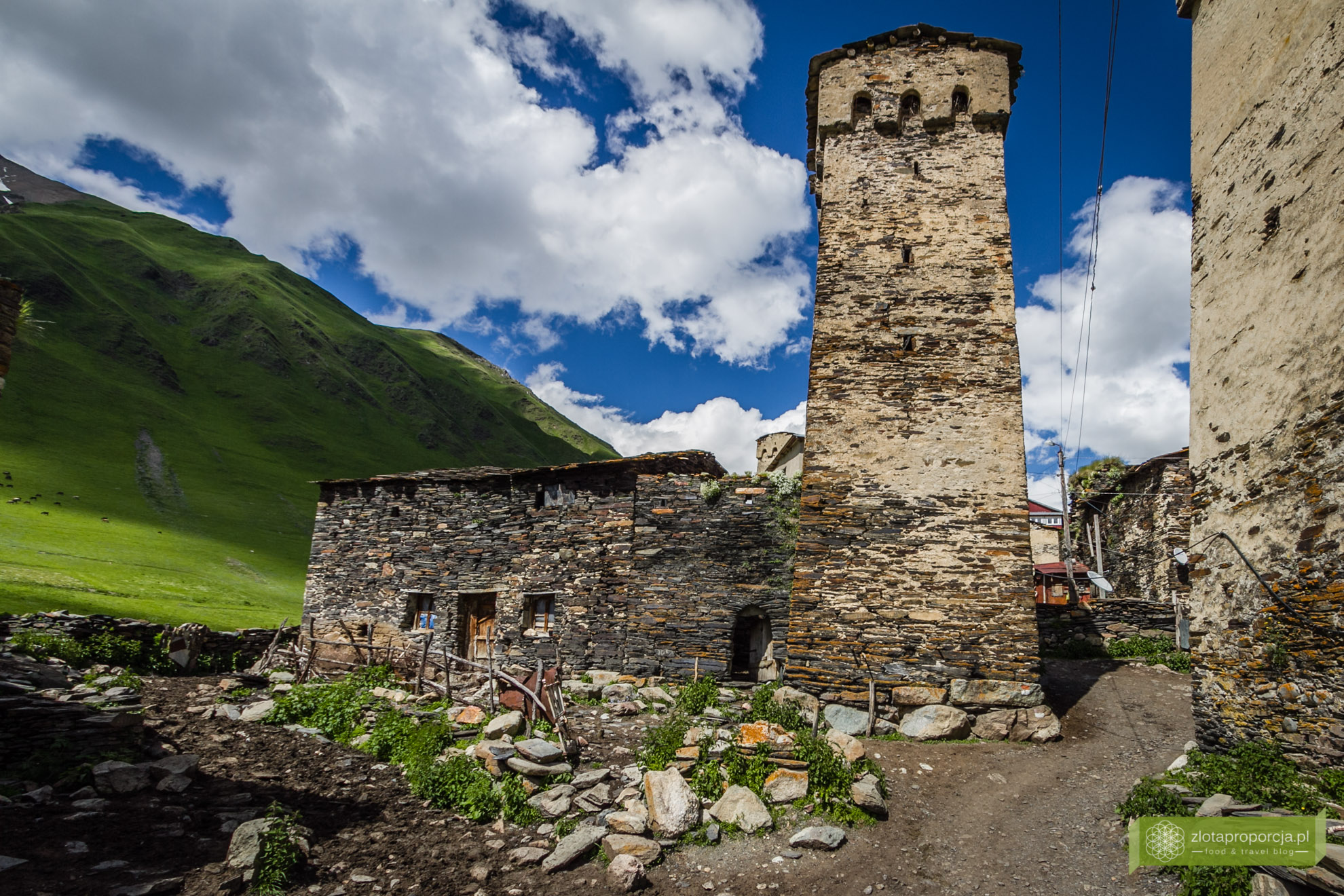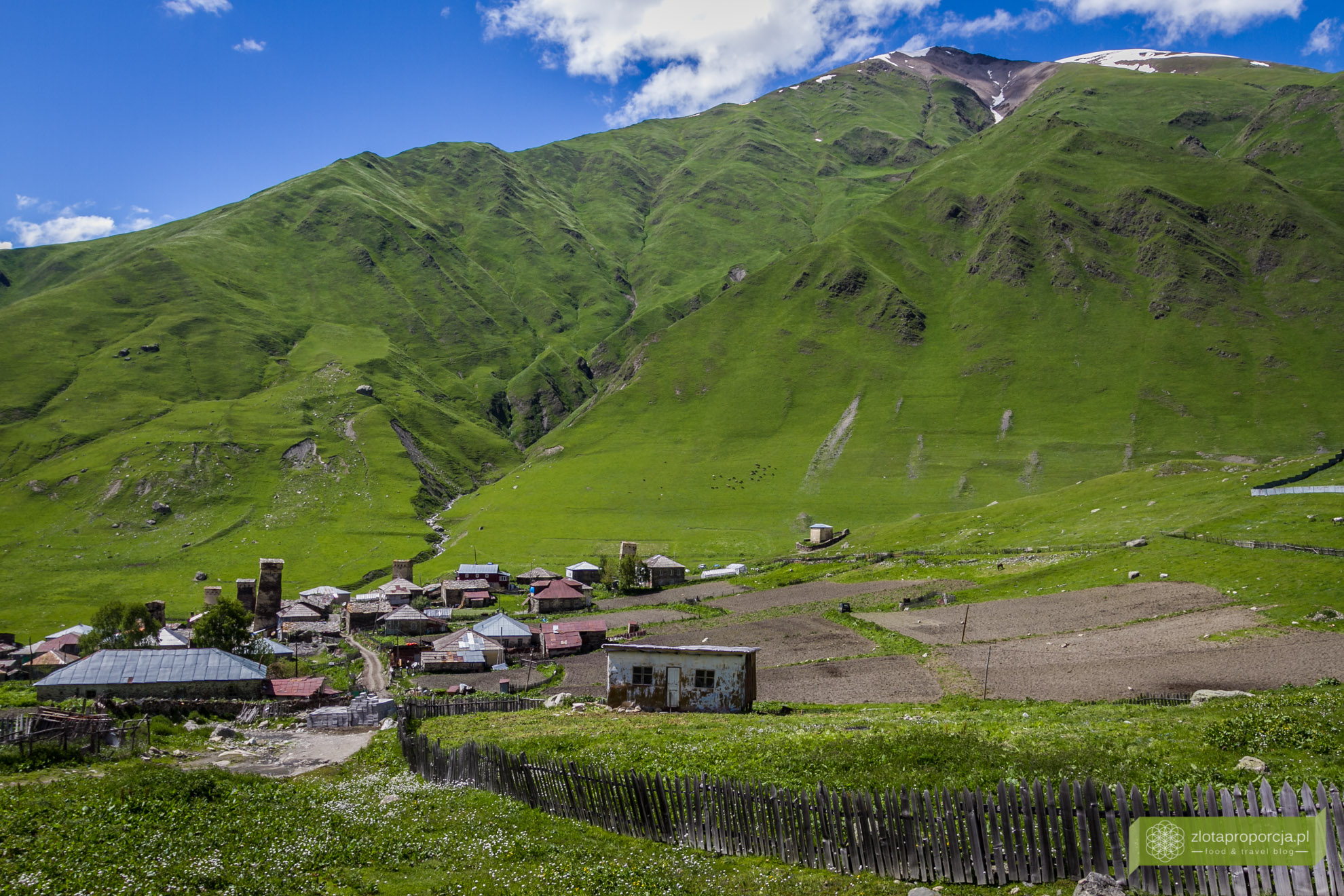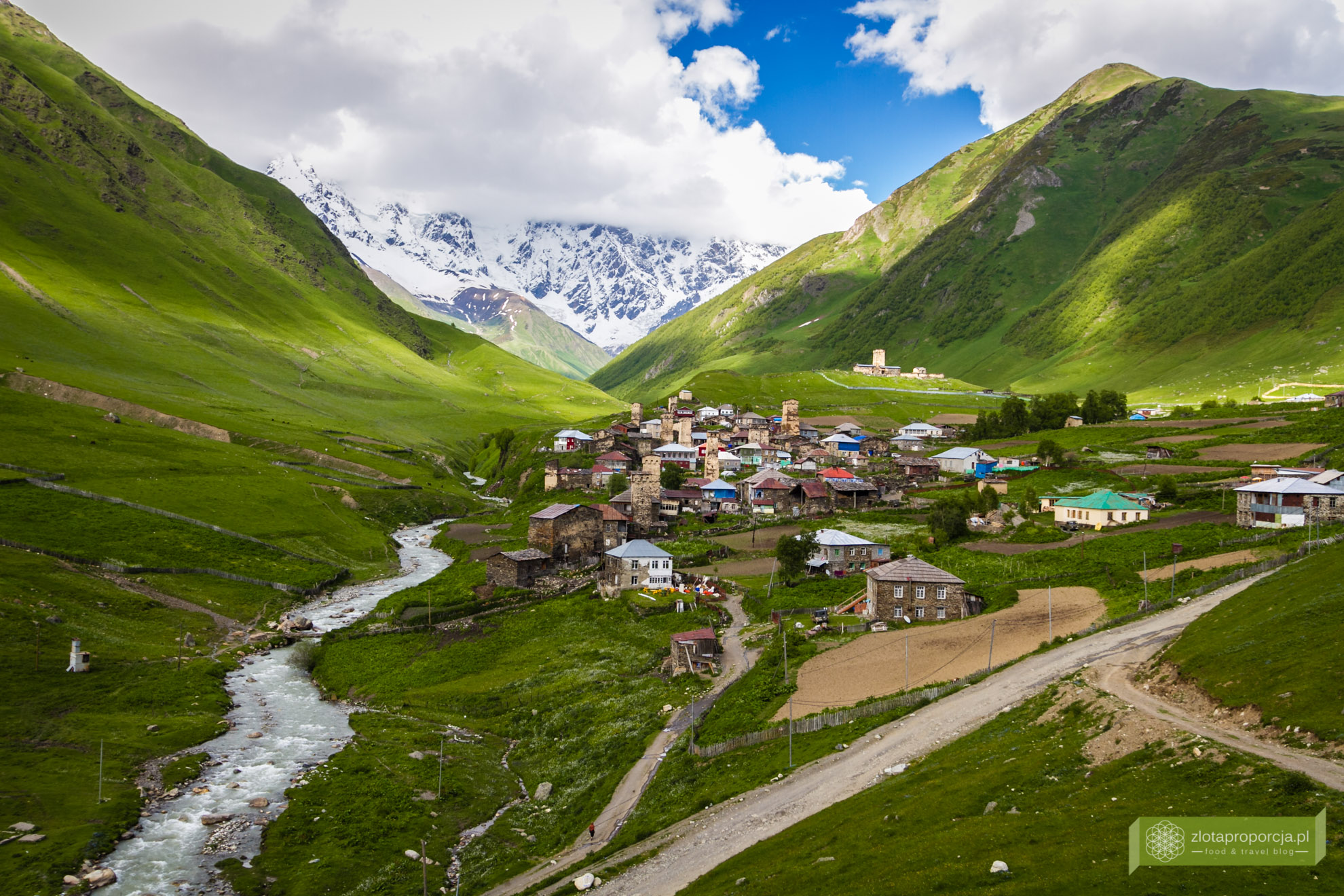Bajecznie, magicznie, malowniczo. Takie mniej więcej słowa cisnęły nam się na usta, kiedy po trzech godzinach męczarni na drodze dojechaliśmy do Uszguli położonego w sercu Swanetii. Poczuliśmy się jak w wiosce hobbitów z Władcy pierścieni. Wokół nas niewiarygodnie zielone zbocza gór, śnieżnobiałe wierzchołki, u stóp bajkowa wioska, nad którą góruje kilkadziesiąt ceglanych wież. W tle Szchara, najwyższy szczyt Gruzji i trzeci szczyt Kaukazu.