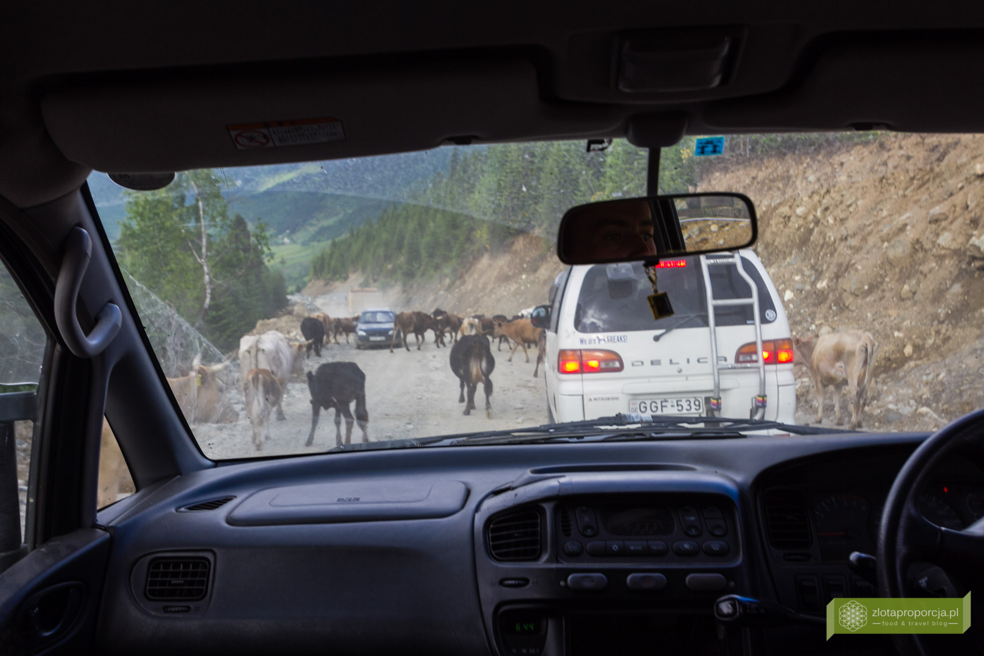 Z Mestii do Uszguli jest zaledwie 45 km, ale podróż samochodem z napędem na cztery koła trwa trzy godziny i nie należy do najprzyjemniejszych. Ostry skręt w prawo, w lewo, pionowy podjazd, mnóstwo dziur, strumienie i stada krów wdzierające się na drogę – żołądek i błędnik muszą być przygotowane na wszystko.