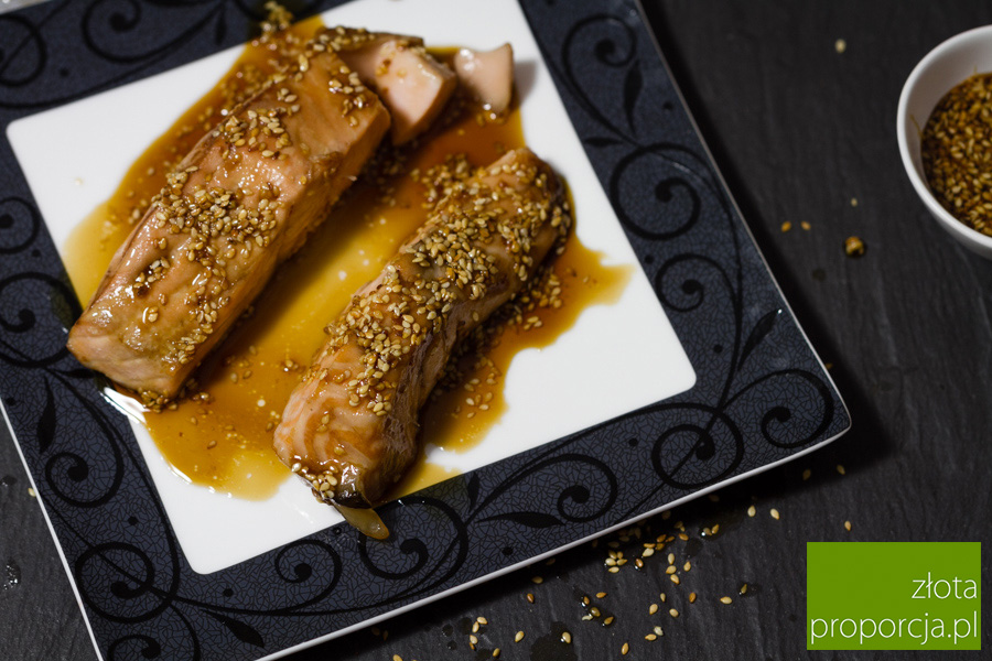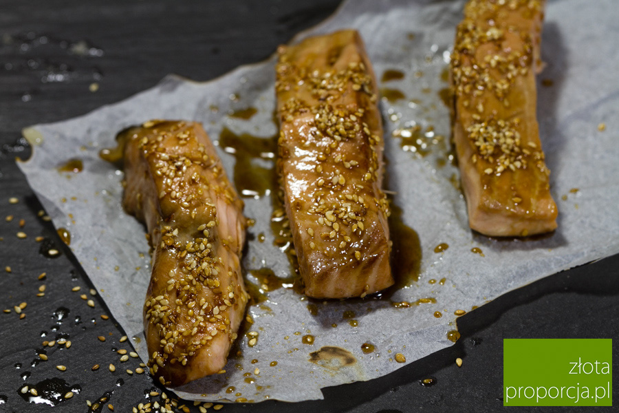 Nic tak nie poprawia nastroju po ciężkim dniu w pracy, jak apetyczny zapach roznoszący się po całym mieszkaniu, atakujący wszystkie nasze zmysły. Łosoś w sosie pachnącym miodem i prażonym sezamem oczaruje nie tylko Twój żołądek, ale także postawi Ciebie na nogi swoim obłędnym smakiem, niesamowitym aromatem i niezwykłą soczystością. Smakuje świetnie jak zjesz go od razu oraz jak pozwolisz mu marynować się całą noc w sezamowym sosie. Często robimy go na kolację i zabieramy następnego dnia do pracy. Sos zrobisz z zaledwie trzech składników – sezamu, miodu i sosu sojowego.