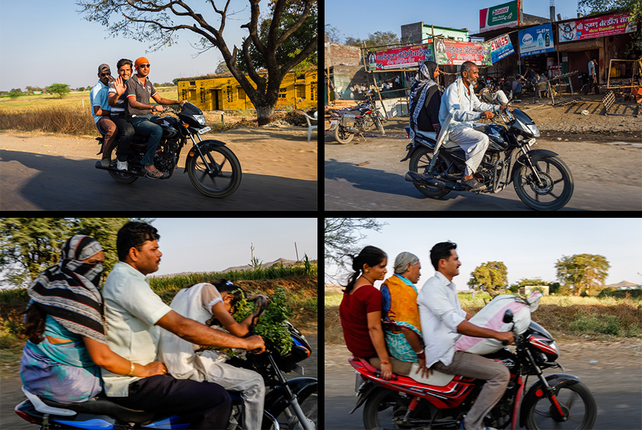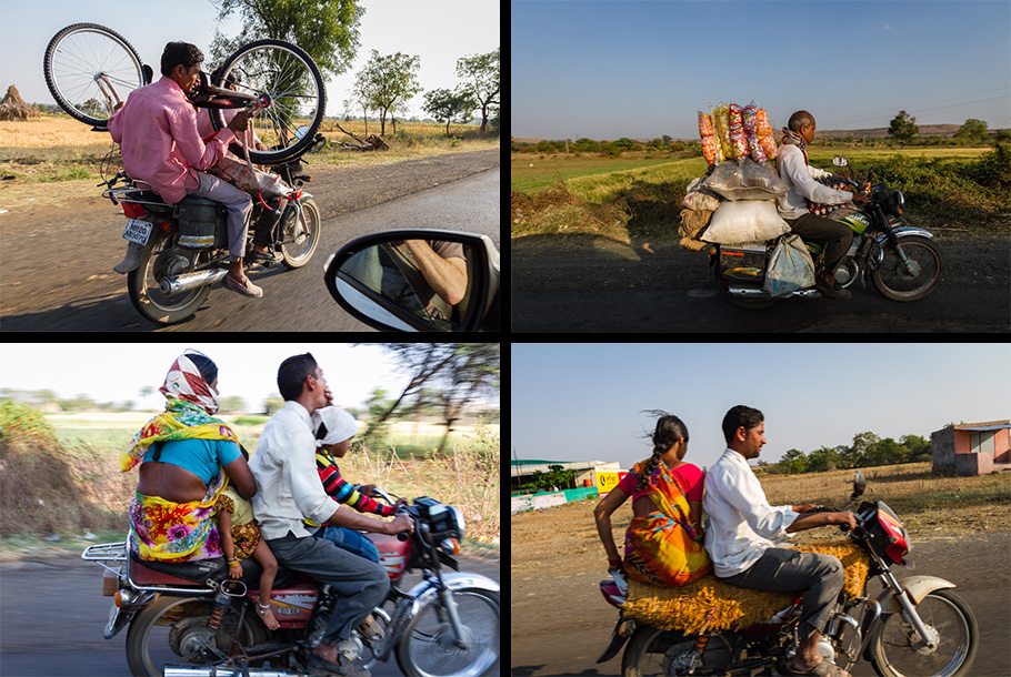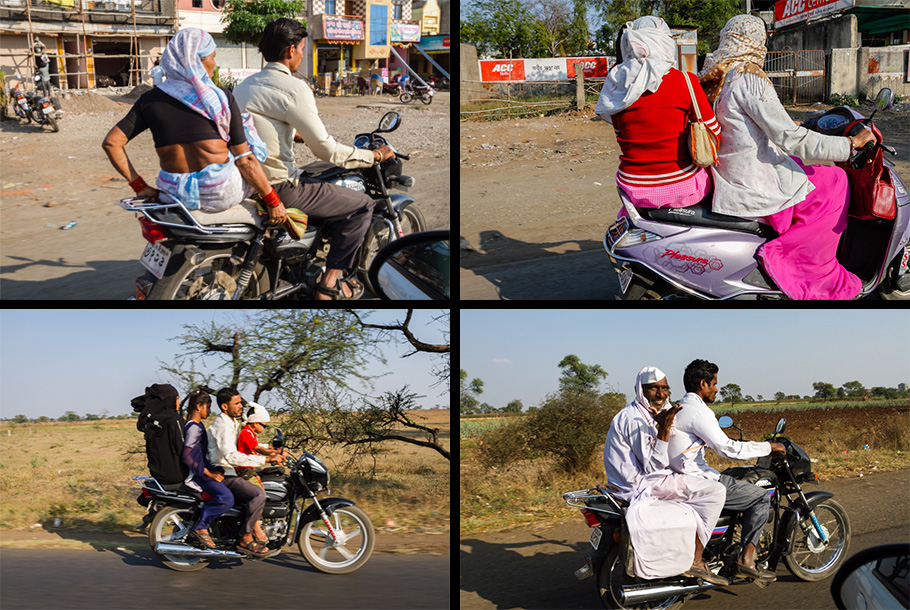 Prawdziwym królem indyjskich dróg jest motor. To nim porusza się większość mieszkańców. Ale jeżeli myślisz, że robią to w europejski sposób, to bardzo się mylisz. Na motor wchodzi tyle osób, ile się zmieści i ładuje tyle bagażu ile uniesie. Rower, dywan, wielkie paki, mały sklep, całe rodziny, tutaj nie ma żadnych ograniczeń!