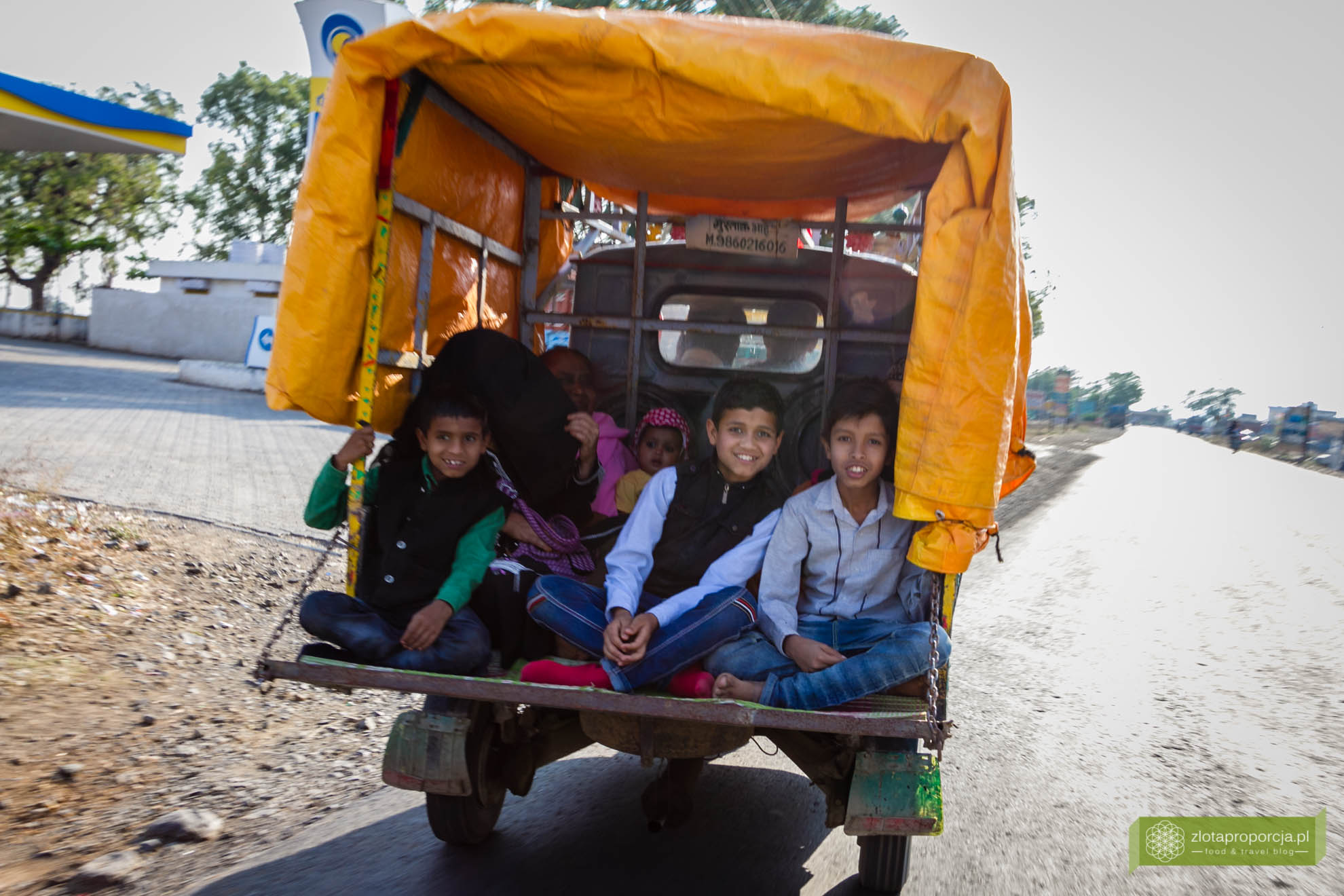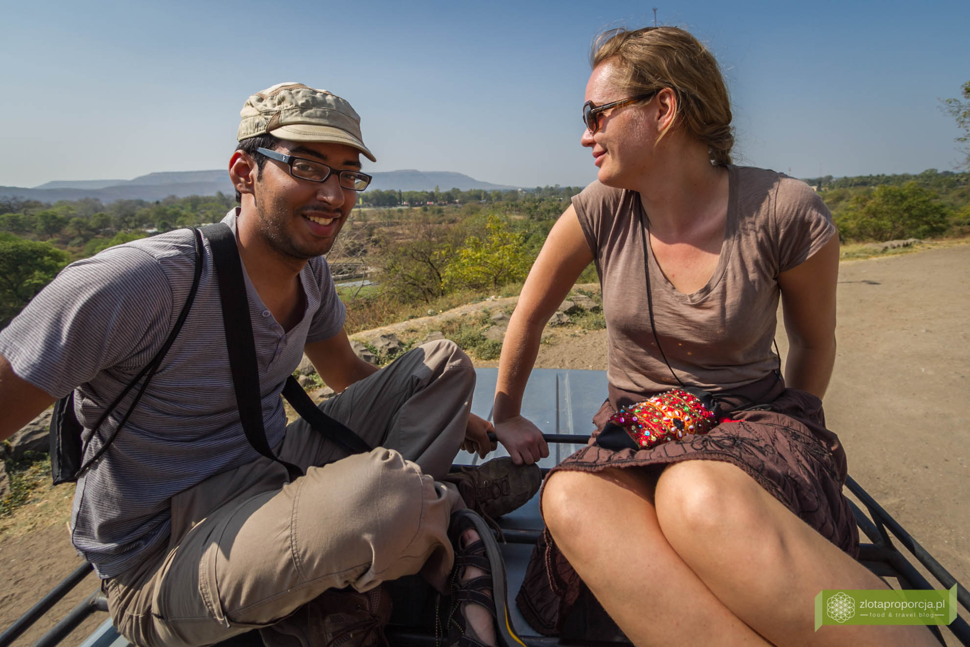 Krążymy z poznanym poprzedniego dnia Francuzem i Austriakiem pomiędzy świątyniami w Ellorze. Musimy przejść spory kawałek piechotą, żar leje się z nieba. Nagle zbliża się bus pełen Indusów. A gdyby tak złapać stopa? Zagaduję kierowcę. Mówi, że nas zabierze i … pokazuje miejsce na dachu. To tylko 10 minut, jest się czego trzymać, wskakujemy. Wiatr rozwiewa włosy, trochę podskakujemy na małych wybojach, chętnie pojechalibyśmy z nimi dalej! Powrót z Ellory do Aurangabadu. Na autobus musimy czekać nie wiadomo ile. Zagaduje nas kierowca jeepa, odjedzie jak tylko będzie komplet, cena niewiele większa niż bilet do autobusu.
