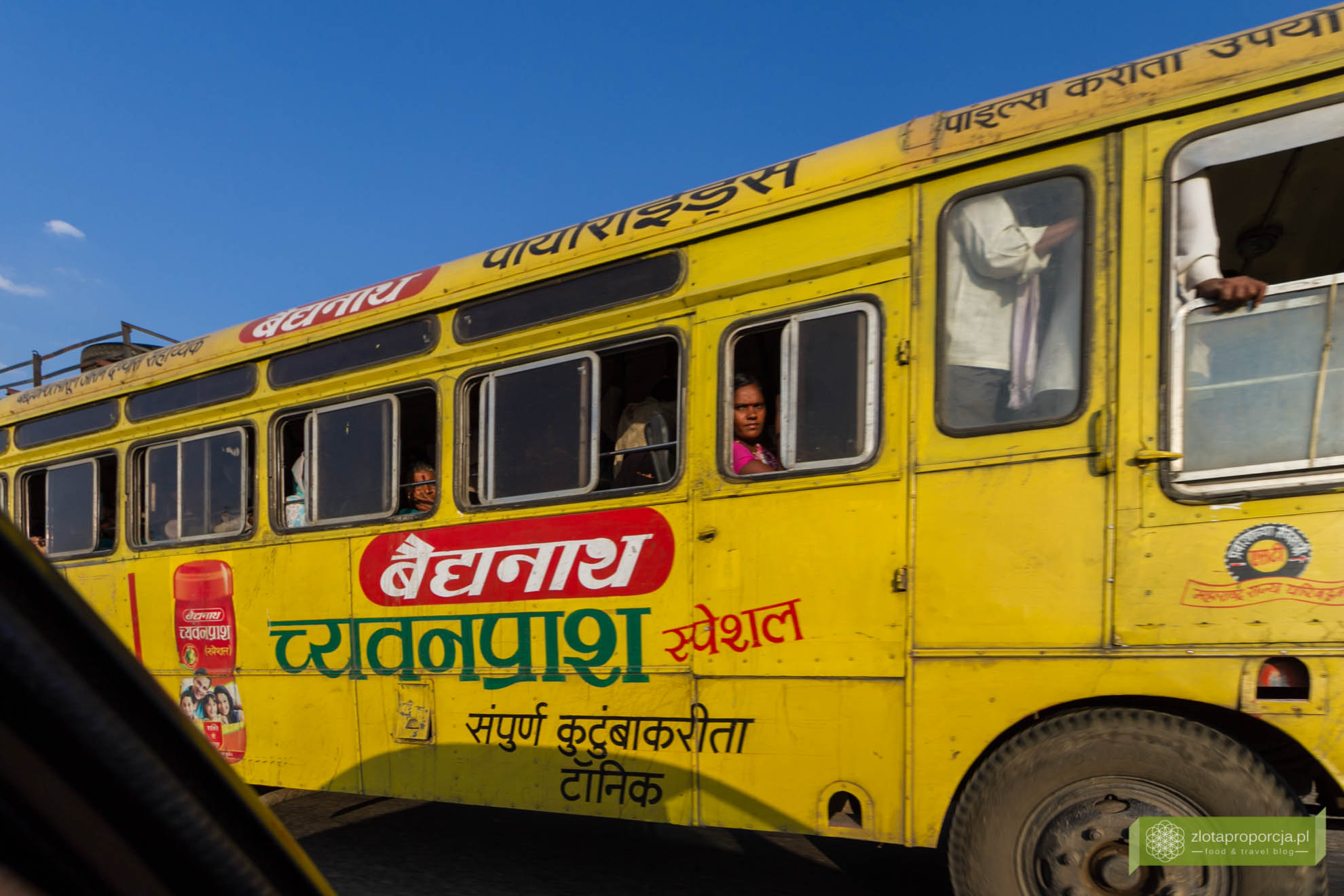Dramat. To słowo najlepiej oddaje nasze autobusowe doświadczenia. Unikaj autobusów za wszelką cenę, w Indiach nie ma nic gorszego. Rozklekotane schoolbusy pamiętające czasu imperium brytyjskiego osiągają zawrotne prędkości 30-50 km na godzinę. Do tego kierowcy jeżdżący jak wariaci, a siedzenia są dla drobnych i niskich hindusów. O miejscu na nogi zapomnij. Raz chcieliśmy dokupić jedno miejsce na trzyosobowej kanapie, bo nie wyobrażaliśmy sobie, że ktoś może się tam dosiąść. Konduktor nas wyśmiał, a przystanek później wsiadła tęga matrona, która zajmowała pół kanapy. Kiedy usiadła wbiła nam boczne barierki w uda. Łukasz wylądował więc na schodach.