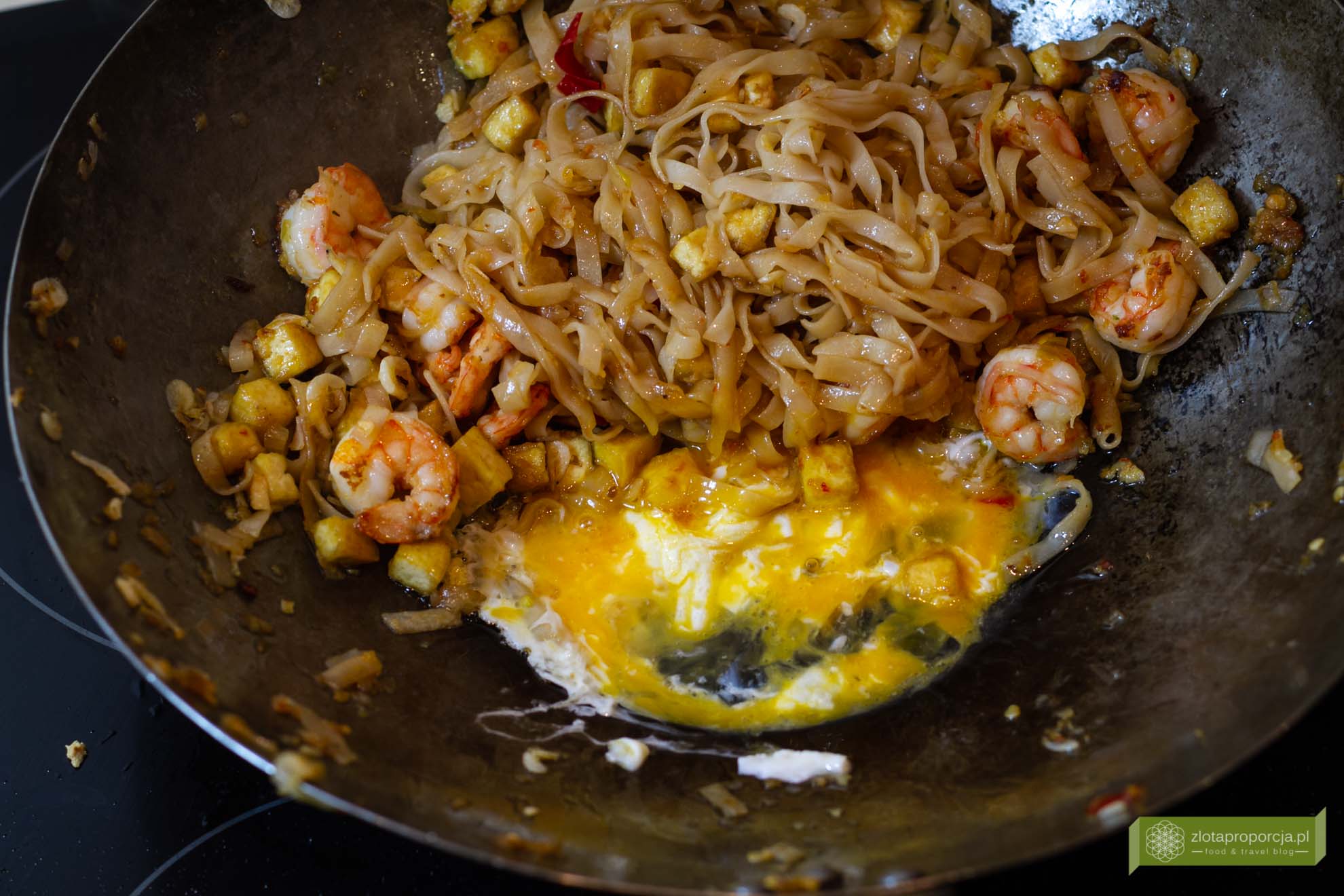 Masz ochotę na pad thaia? Możesz pójść do tajskiej knajpki i zapłacić za niego co najmniej trzydzieści kilka złotych. Danie, które w Tajlandii kosztuje kilka złotych i które jesz na obdrapanych, plastikowych krzesełkach rozstawionych na bazarze czy pod wiaduktem, albo nawet siedząc na krawężniku, w stylizowanych na modłę azjatycką knajpach podawane jest w małych, wręcz minimalistycznych porcjach w napompowanej cenie. Krewetek jest tyle co kot napłakał, możesz też zapomnieć o szczypiorku, kiełkach, ostrej papryce i orzeszkach stojących na stole, tak żebyś mógł doprawić pad thai’a dokładnie tak jak lubisz. Lepiej zaprosić znajomych i zrobić go samemu w domu – wyjdzie dużo taniej i bardzo często dużo smaczniej. Przepis nie jest trudny, makaron możesz zrobić z samym tofu, z tofu i krewetkami, tofu i kurczakiem lub z tymi trzema składnikami. Do pad thaia podchodziliśmy dziesiątki razy. Za pierwszym razem wyszedł dobry, za drugim jeszcze lepszy, za każdym kolejnym zmienialiśmy szczegóły i niuanse, aż w końcu doszliśmy do momentu, w którym chcemy się podzielić naszym przepisem.