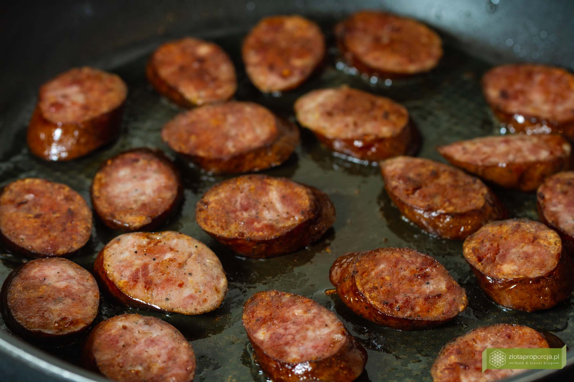 W międzyczasie pokrój na plasterki kiełbasę lub frankfurterki i podsmaż je na patelni. Kiedy ziemniaki będą gotowe, rozbij je i zmiksuj lekko zupę oraz dopraw solą, pieprzem, gałką i dużą garścią majeranku. Podawaj z plasterkami kiełbasy. Ewentualnie, aby wzbogacić jeszcze smak, możesz dodać kromkę suchego, pokruszonego, dobrego chleba razowego. Wtedy zupa ziemniaczana jest nie tylko pyszna, ale także niezwykle sycąca!