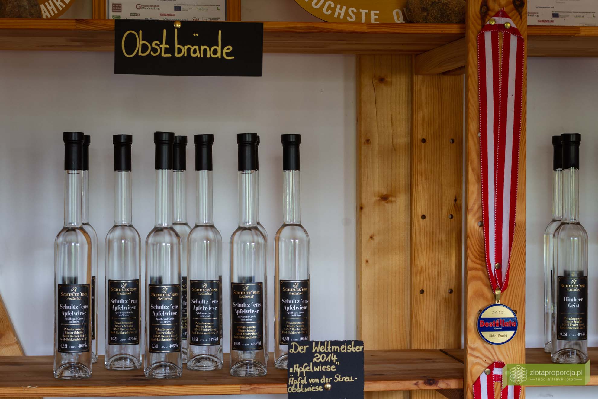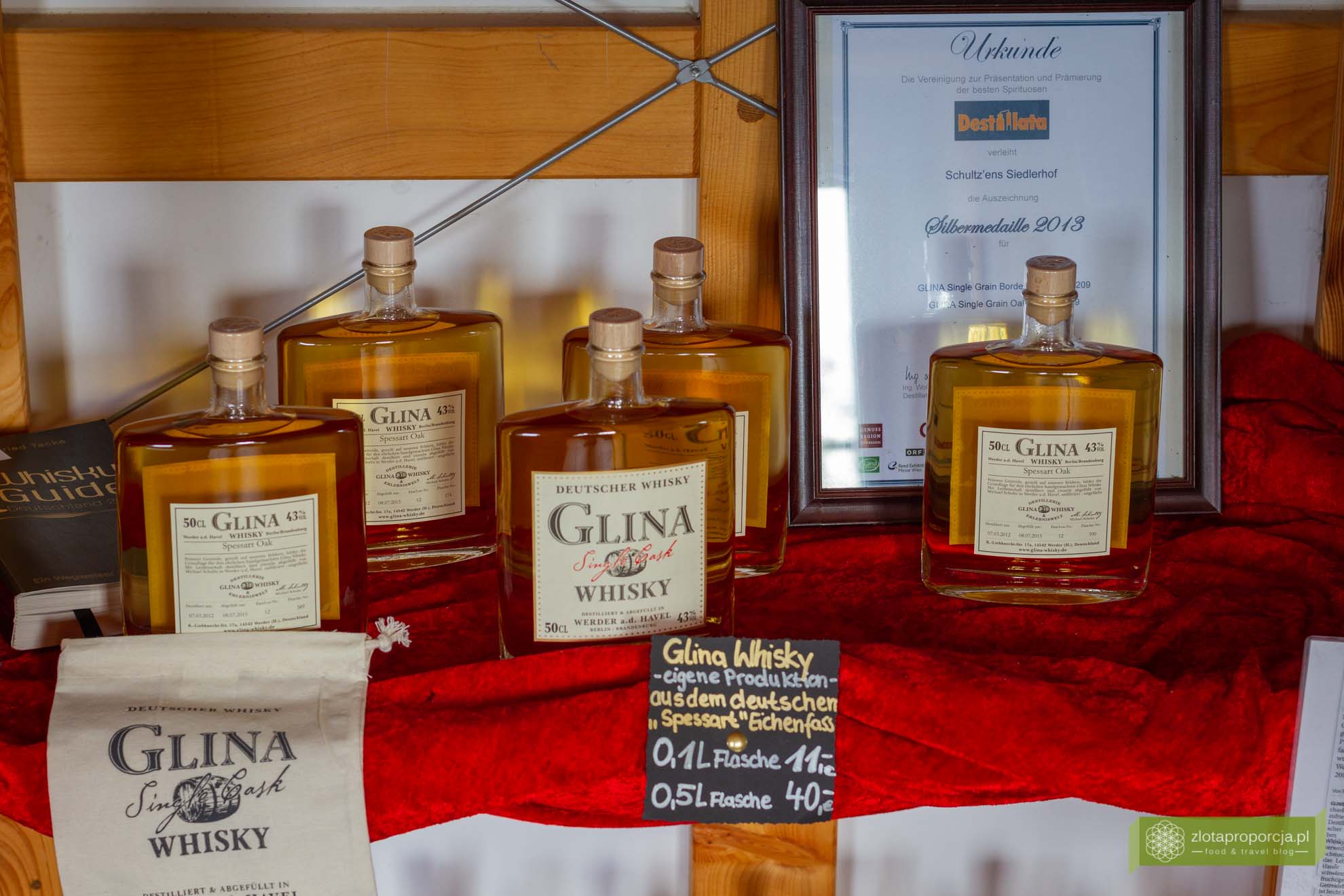 Owocowa obfitość Brandenburgii przejawia się także w produkowanych w tym regionie alkoholach. Wspominaliśmy już o winie z rokitnika czy nalewce ogórkowej, ale wina i nalewki robi się tu z najróżniejszych owoców i warzyw – truskawek, jagód, jabłek, wiśni, gruszek, dyni czy szparagów. Wino może być także musujące. Popularne jest secco, czyli owocowa czy też dyniowa niemiecka wariacja prosecco. Oczywiście w smaku nie da się ich porównać do prosecco. Popularne są także mocniejsze owocowe trunki, czyli obstbrände. Moga być jabłkowe, gruszkowe, malinowe czy też mieszane. W GLINA Whisky spróbowaliśmy nie byle jakiego, bo mistrzowskiego Obstbrände Apfelwiese, które zdobyło medal Mistrzostw Świata Obstbrände w 2014 roku. Ale do tego miejsca pojechaliśmy w innym celu, aby spróbować lokalnej whiskey. I choć zdecydowanie wolimy dobre wino od whiskey, musimy przyznać, że mile nas zaskoczyła. Cały proces produkcji Glina whiskey odbywa się na miejscu, od uprawy jęczmienia, poprzez fermentację i destylację, po leżakowanie.