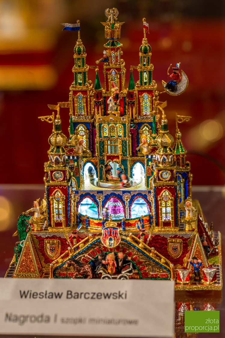 Ogromne wrażenie robią także miniaturowe szopki. To właśnie one wymagają największej precyzji, skupienia i cierpliwości, są też najbardziej pracochłonne. Najważniejszym narzędziem szopkarza jest bowiem lupa. Bez niej udekorowanie 2,5 cm figurek byłoby niemożliwe. W tym roku pośród miniatur zobaczyć można nie tylko klasyczną architekturę szopkową, ale także bardziej awangardowe pomysły, jak ten oto plaster miodu.