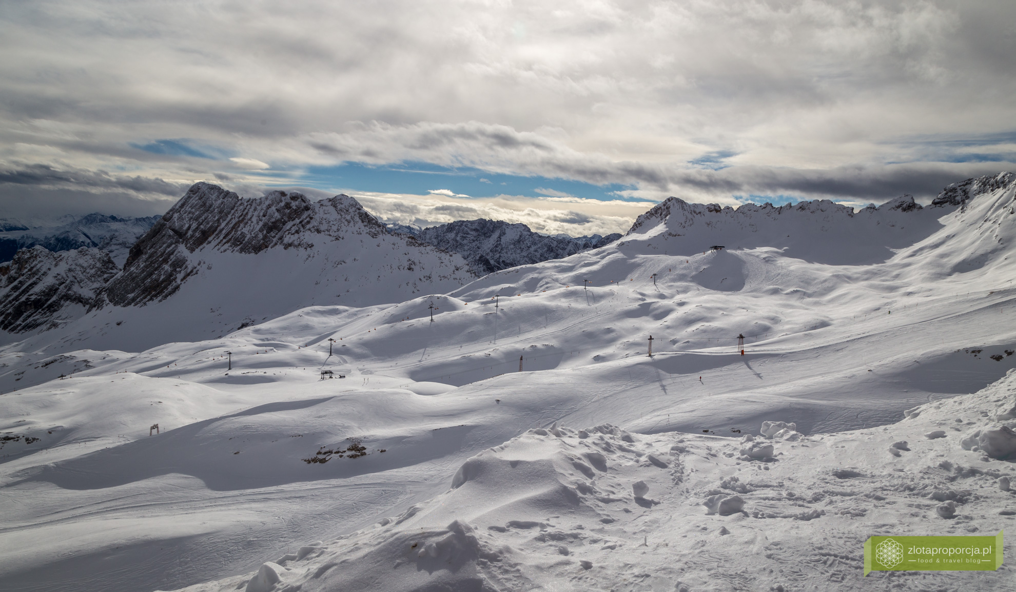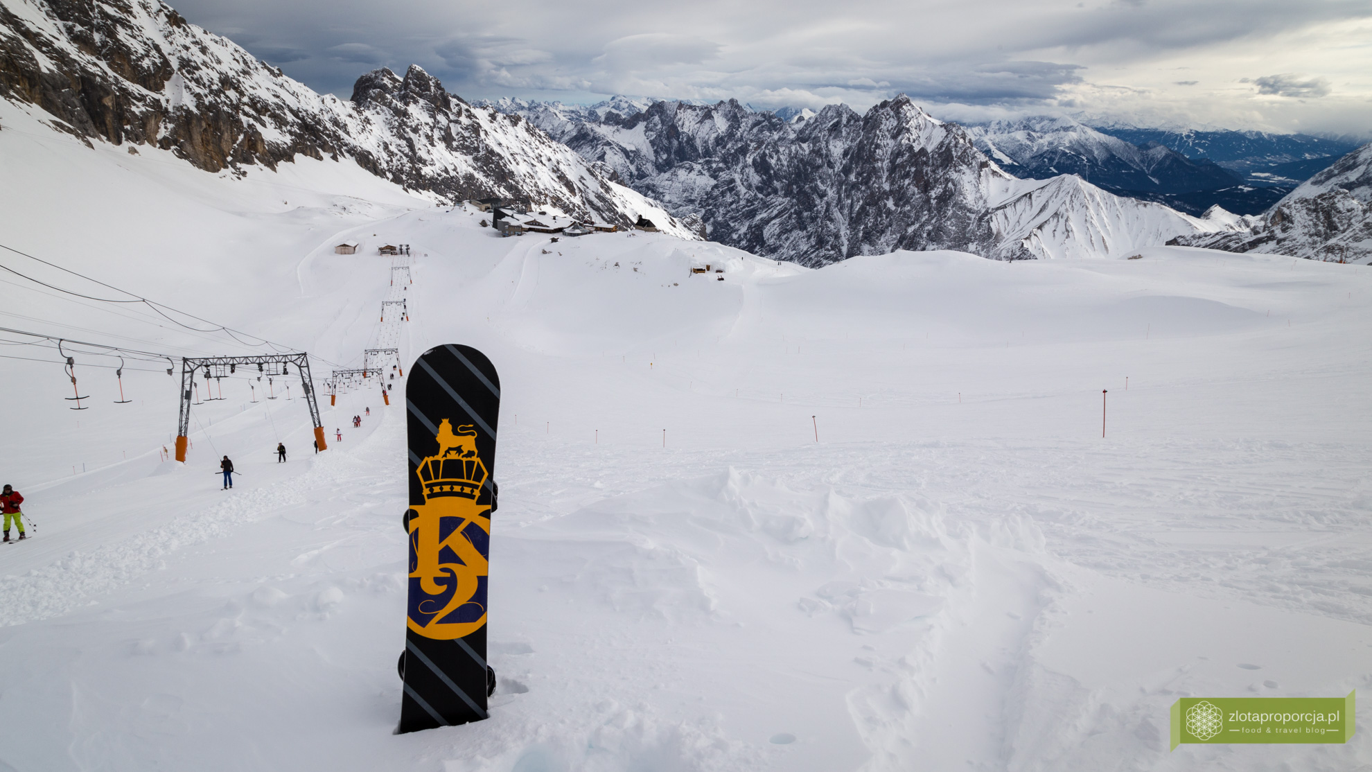 Zugspitze zimą chodziło nam po głowie od dawna. Kto nie chciałby stanąć na dachu Niemiec, ich najwyższym szczycie, rozejrzeć się wokoło i ujrzeć morze górskich szczytów pokrytych grubą warstwą śniegu, a potem wpiąć narty lub deskę, aby jeździć na białej, lodowcowej wyspie leżącej pomiędzy tymi szczytami?