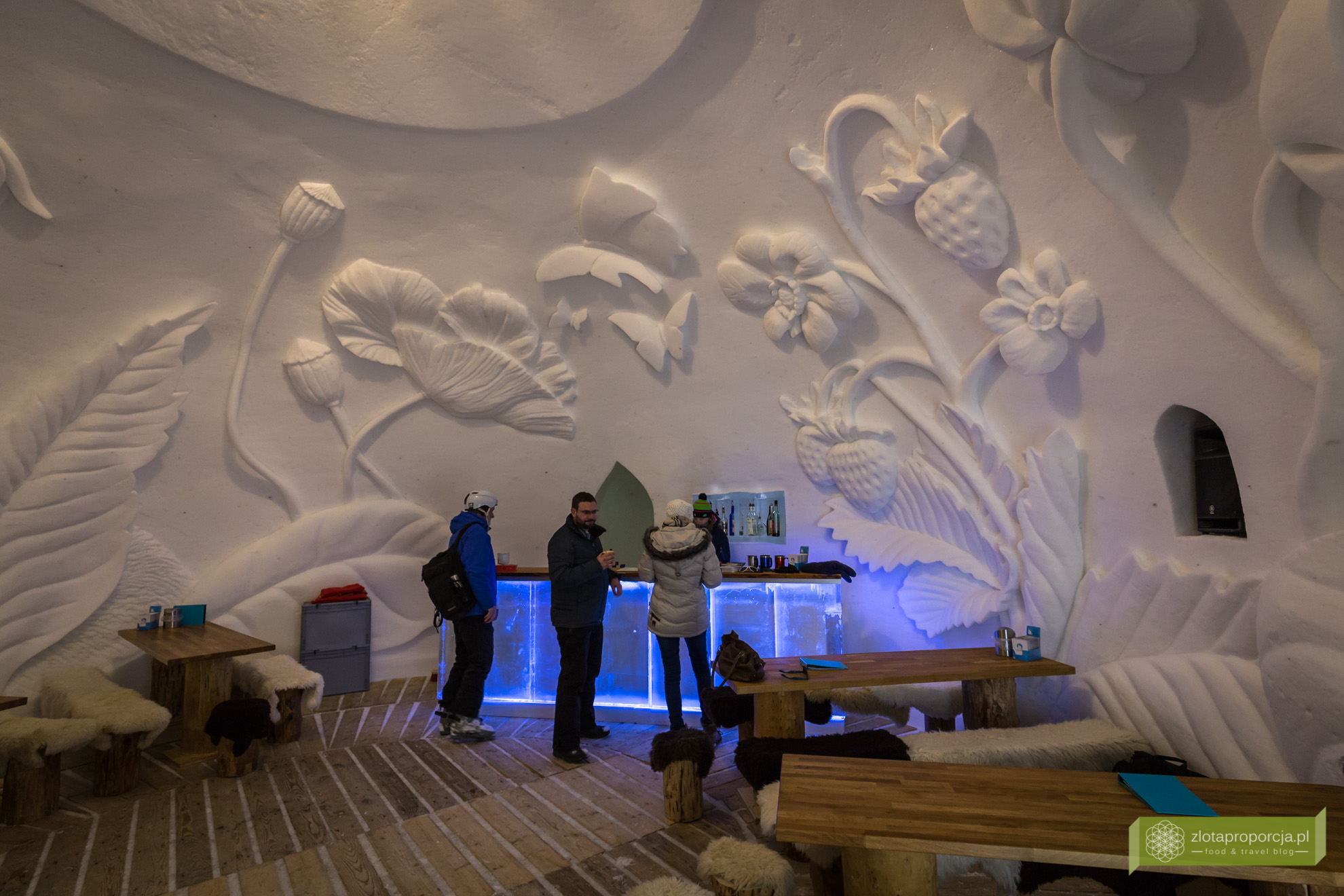 Na Zugspitzplatt można boweim nie tylko jeździć na nartach, ale także spędzić noc na 2 600 metrów. Po środku ośrodka narciarskiego znajduje się wioska-hotel złożona z ponad 20 igloo z najwyżej położoną sauną i jacuzzi w Niemczech. Niestety nie mieliśmy okazji spojrzeć na gwiazdy z parującego i bulgoczącego jacuzzi. Nie tym razem. Wypiliśmy jedynie gorącą czekoladę w lodowym barze. Dla zainteresowanych nocleg w lodowym igloo kosztuje od 119 euro za osobę za noc, temperatura w pokoju oscyluje wokół 0 stopni, doba hotelowa zaczyna się o 16:00, do 14:00 dla wszystkich otwarty jest bar w wiosce, można też przespacerować się lodowymi korytarzami i zobaczyć jak wygląda hotelowy pokój.