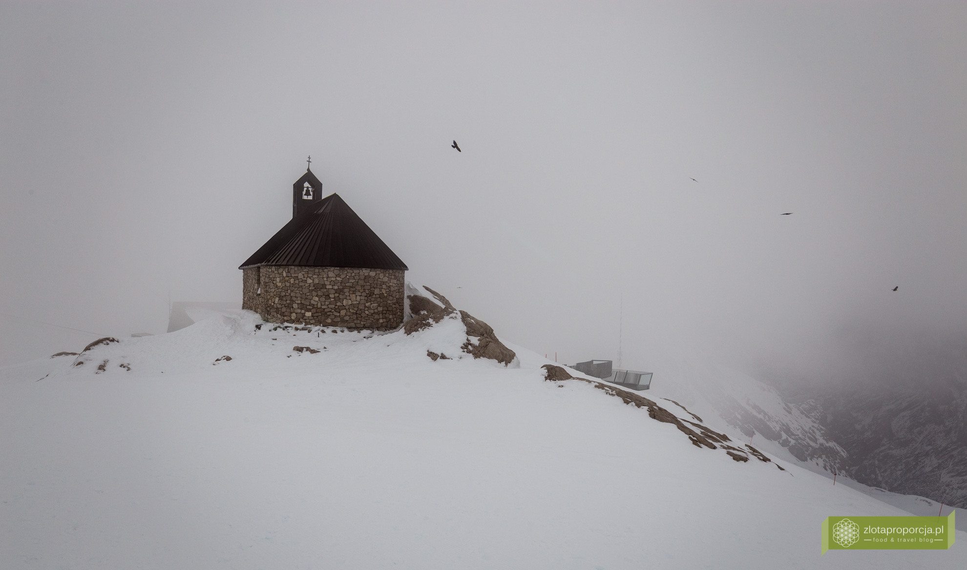 Jeżeli nie jeździsz na nartach lub snowboardzie, kiedy nacieszysz oczy tarasem widokowym i pięknym widokami, znajdziesz na Zugspitzplatte dwa miejsca, które są w zasięgu kilku minut od kolejki. Gdzieś przeczytaliśmy, że nigdzie w Niemczech nie będziesz bliżej nieba niż w kapliczce Marii Heimsuchung. Trudno się z tym nie zgodzić, w końcu to prawie najwyżej położony budynek na najwyższym szczycie Niemiec. Prawie, bo wyżej znajduje się jedynie ponad 100-letnia stacja meteorologiczna (otwarta w 1900 roku), taras widokowy z restauracjami oraz sezonowa wioska igloo Iglu Dorf.