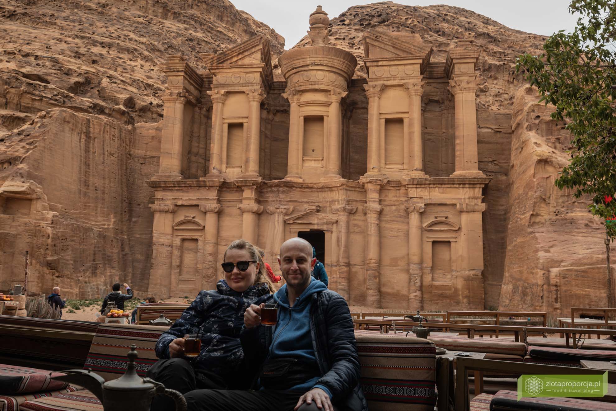 Bezlitosna pobudka o 6:30 rano (5:30 czasu polskiego), aby być w Petrze jak najwcześniej. Zrobiliśmy zieloną herbatę, zapakowaliśmy przygotowane dla nas śniadanie na wynos i ruszyliśmy. Około 7:30 w Petrze jest już trochę ludzi, ale nie ma wielkich tłumów. Przeszliśmy drogę do klasztoru i z powrotem wraz z punktami widokowymi wokół klasztoru dosyć nieśpiesznie robiąc kilka postojów na śniadanie czy herbatę. Koło 16 popsuła się pogoda, zaczęło mocno wiać i kropić, odpuściliśmy zielony szlak (wiedzieliśmy, że wrócimy do Petry ostatniego dnia) i skierowaliśmy się do wyjścia. Jak tylko wsiedliśmy do samochodu, rozpadało się na dobre, przez chwilę padał nawet grad. Wieczór spędziliśmy na poszukiwaniach jordańskich smakołyków. O Petrze przeczytasz więcej tutaj: Petra. Starożytne skalne miasto Nabatejczyków i największa atrakcja Jordanii.
