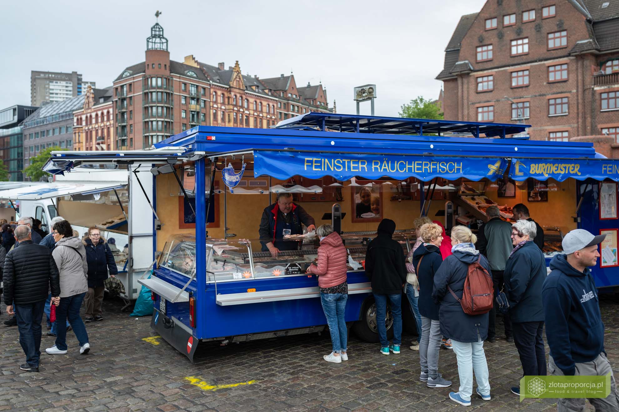 Jest niedziela około 7-mej rano. Docieramy do słynnego Fischmarkt, który w Hamburgu odbywa się w każdą niedzielę od ponad 300 lat. To najsłynniejszy targ rybny w Niemczech i jedno z najważniejszych wydarzeń na kulinarnej mapie Hamburga. Wokół nas tłumy, gwar i harmider. Z każdej strony dobiegają nas krzyki i nawoływania do kupna, w powietrzu unosi się zapach smażonej ryby. Targ rozpoczyna się o godzinie 5.30 i co tydzień odwiedza go ponoć 70 000 osób. Wozy i konie zastąpiły stragany i samochody, a aukcje przeniosły się z hali na ulicę. Ale dawny klimat oraz głośna i gwarna atmosfera cały czas unoszą się w powietrzu.
