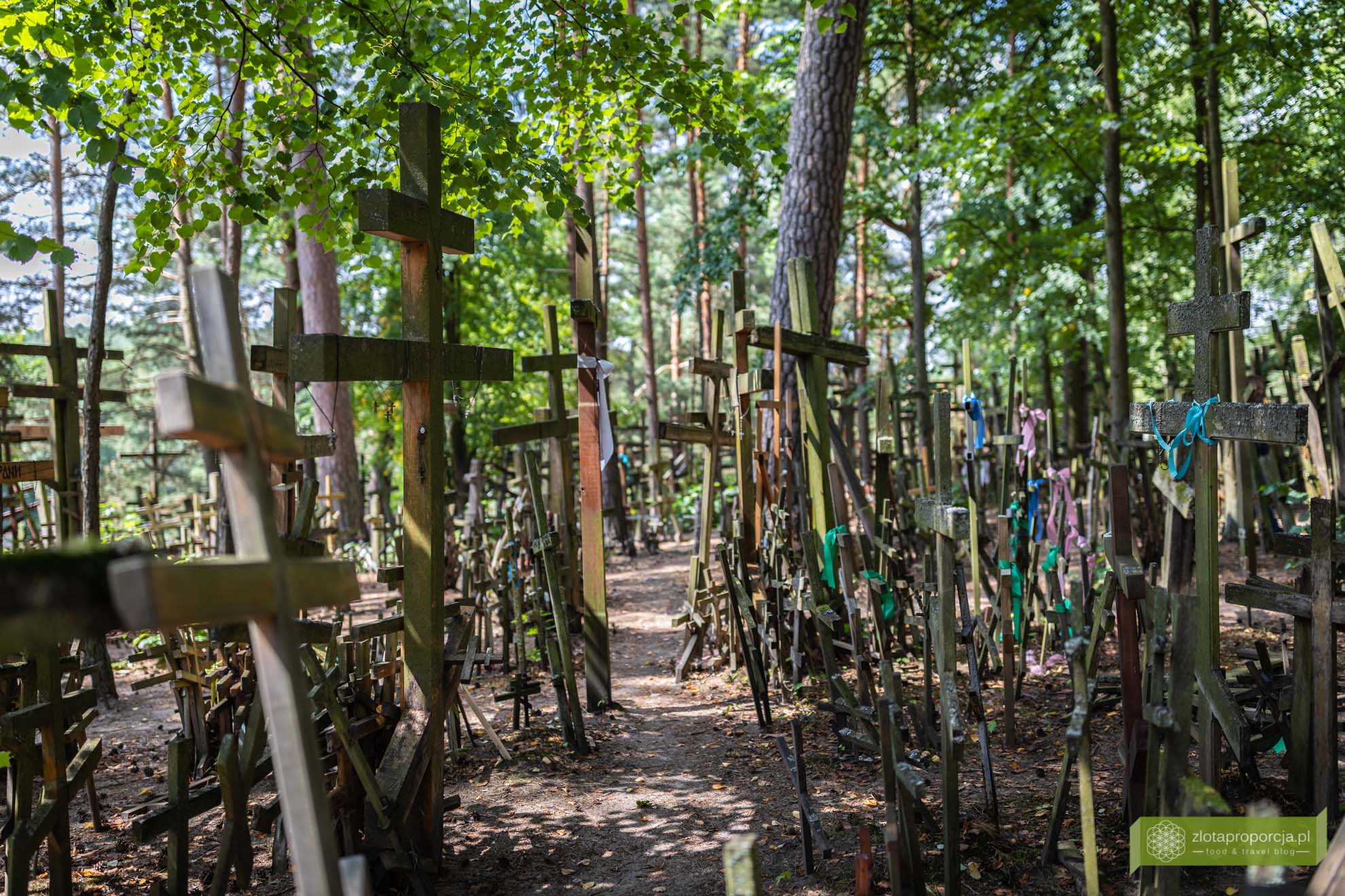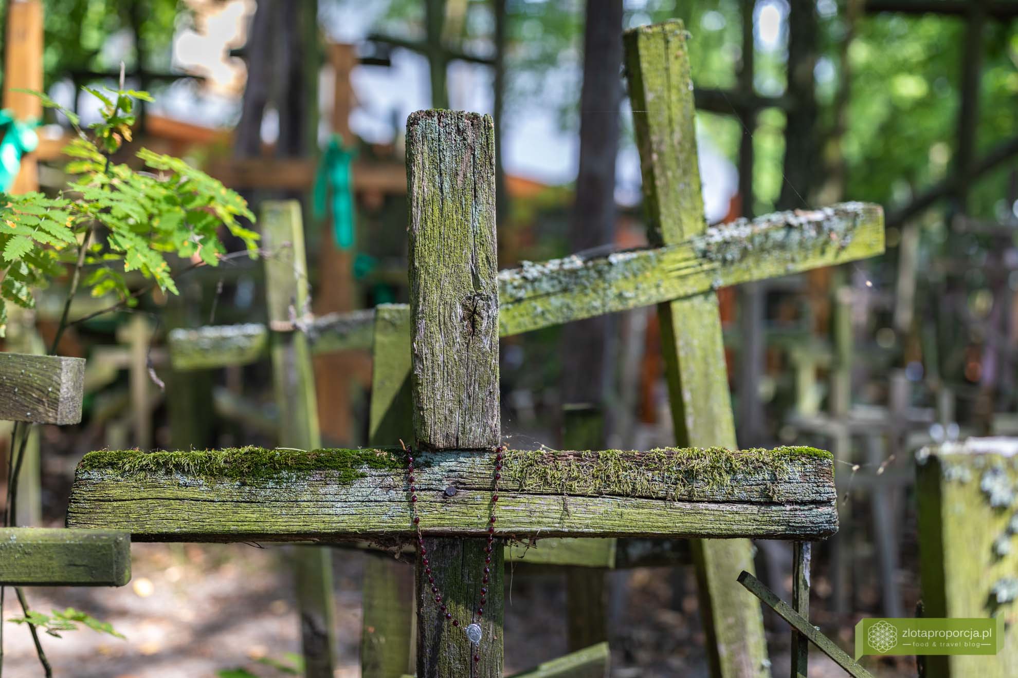 Krzyży jest ponad 7 tysięcy, a może i więcej, bowiem ciężko jest je policzyć. Niektóre pojawiły się kilka lat temu, inne kilkadziesiąt lat wcześniej, jeszcze inne kilka chwil po naszym przybyciu. Na wielu z nich widać mech i upływ czasu, najstarsze krzyże pochodzą aż z XIX wieku. Krzyże są przede wszystkim drewniane, ale także metalowe i kamienne. Mają przeróżne wielkości, najwyższe mierzą nawet kilka metrów. Na większości wyryto napisy wotywne i ozdobiono je różańcami, świętymi obrazkami i kolorowymi wstążkami. Wchodzimy na jedną ze ścieżek wydeptanych pomiędzy drzewami i krzyżami. W powietrzu jest czuć tę dobrą energię, sprzyjającą refleksji, wyciszeniu i zadumie. Zaczynamy rozumieć, dlaczego to miejsce przyciąga tak wielu pielgrzymów.