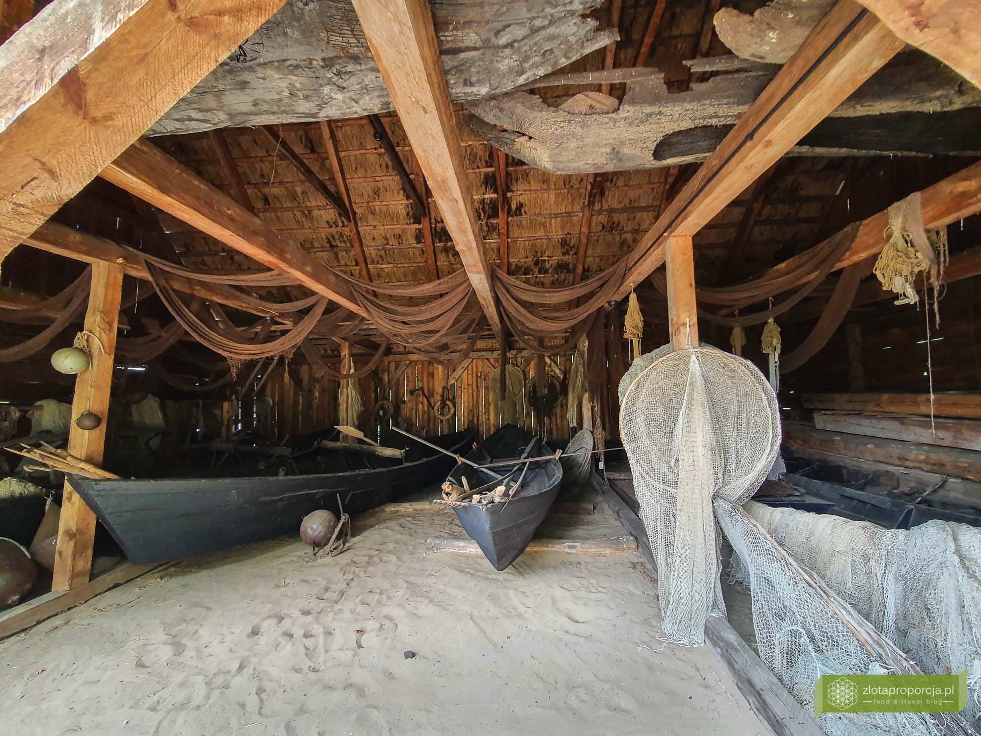 Trzcina z okolicznych jezior była wykorzystywana nie tylko do pokrycia dachów, ale także do ocieplania ścian w budynkach. Drewniane płoty, kwiaty w drewnianych donicach i haftowane firanki w oknach przywodzą na myśl dawne babcine chaty. Zachowany jest także jeden z rybackich szałasów, które zapewniały rybakom schronienie nad brzegiem jezior podczas połowów.
