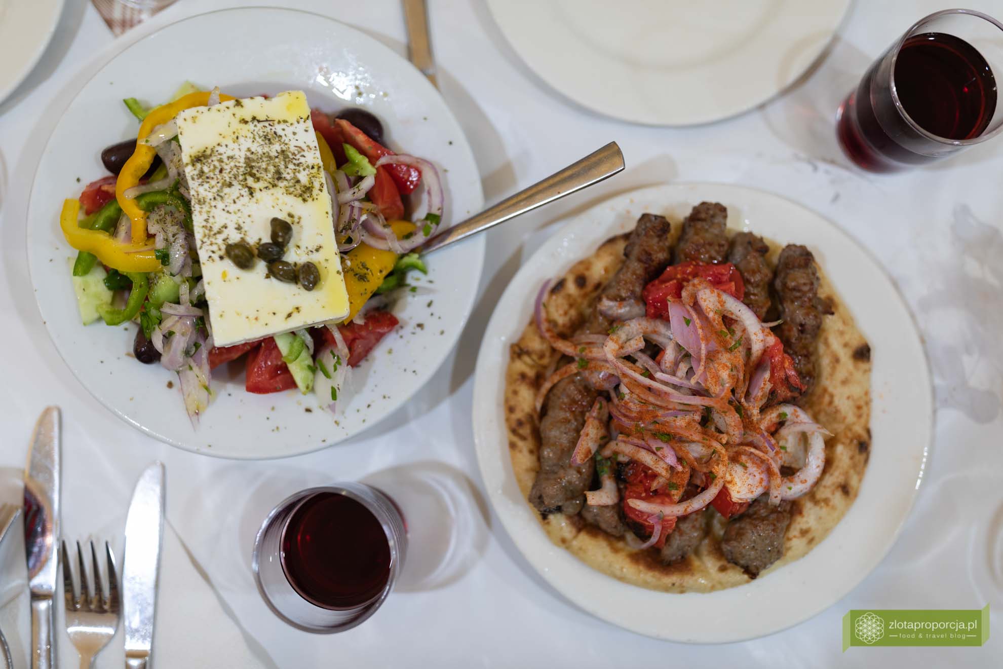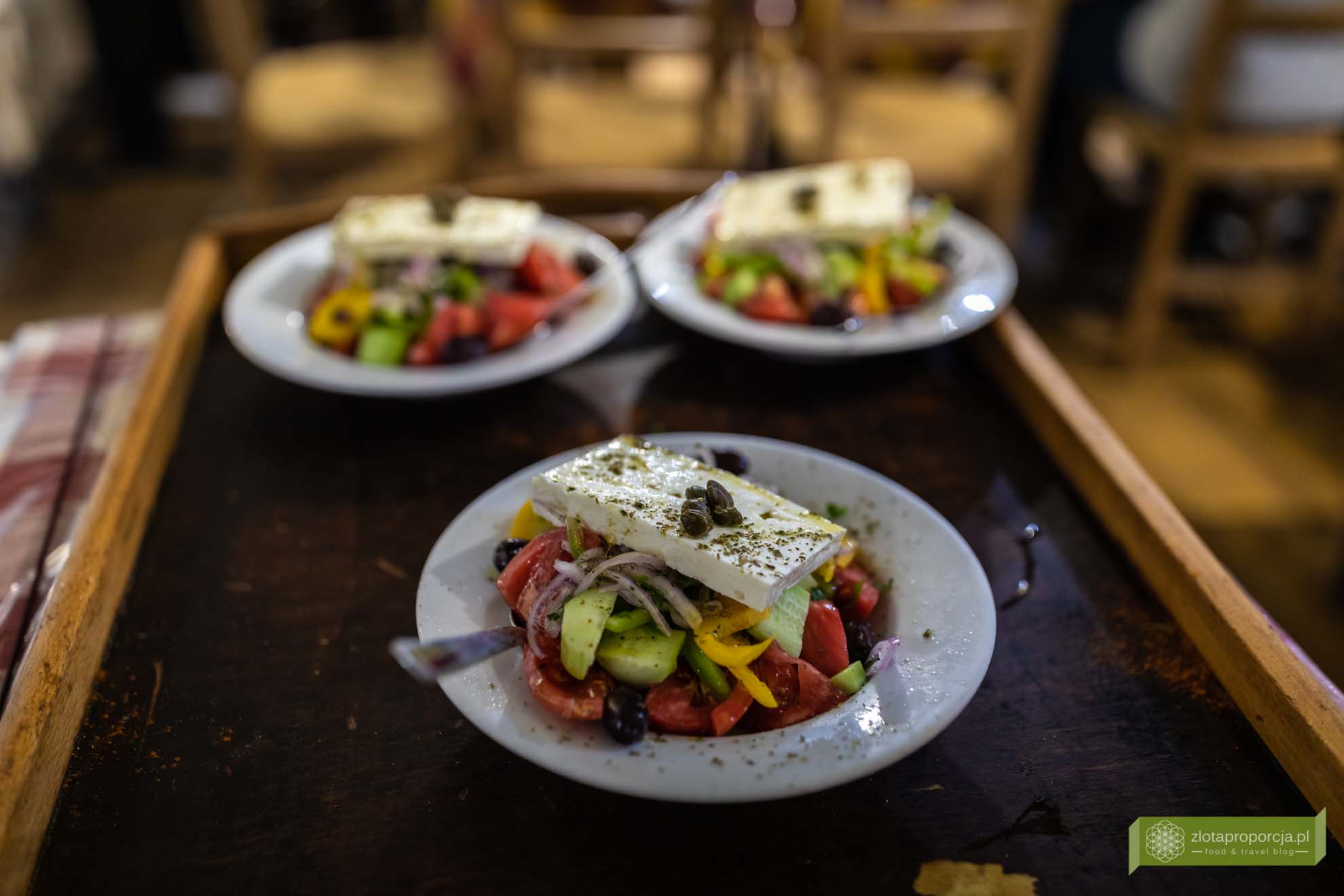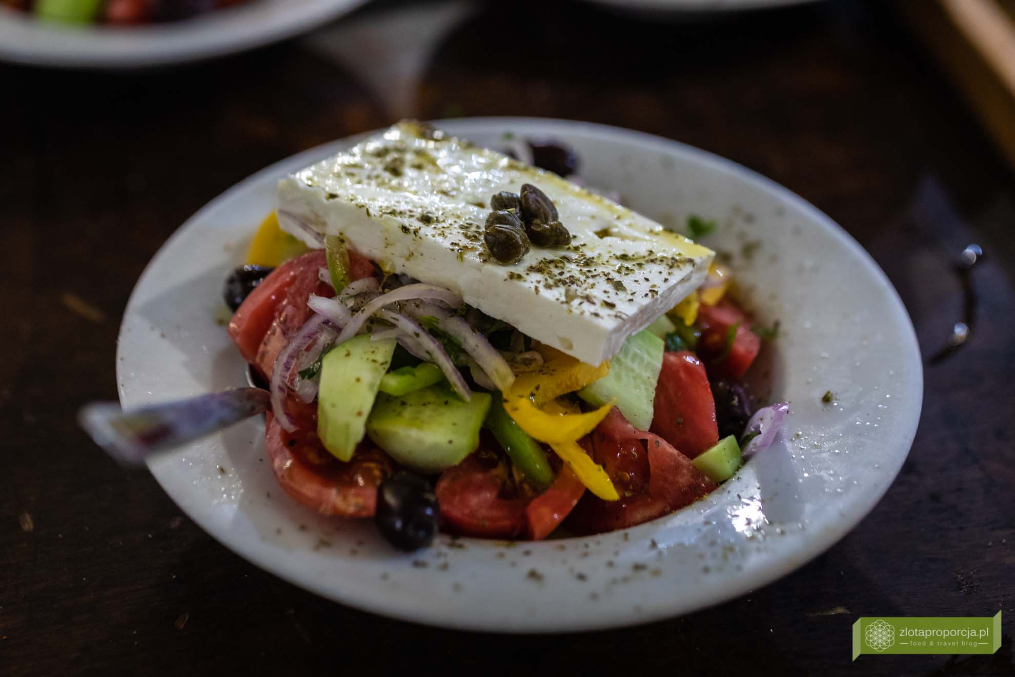 Po trzecie sałatki nie miesza się przed podaniem, po prostu dodaje się po kolei poszczególne składniki, a ser kładzie na wierzchu. Po czwarte oliwki dodaje się w całości, koniecznie powinny być one wysokiej jakości, najlepiej pasują oliwki kalamata z pestkami. Wreszcie do horiatiki nie dodaje się sosów, a jedynie polewa oliwą i doprawia oregano. Czasem dodaje się kilka kropli octu balsamicznego, ale nigdy czosnku czy też musztardy. Nam najbardziej smakuje ta najprostsza polana jedynie dobrej jakości oliwą z oliwek i doprawiona oregano.