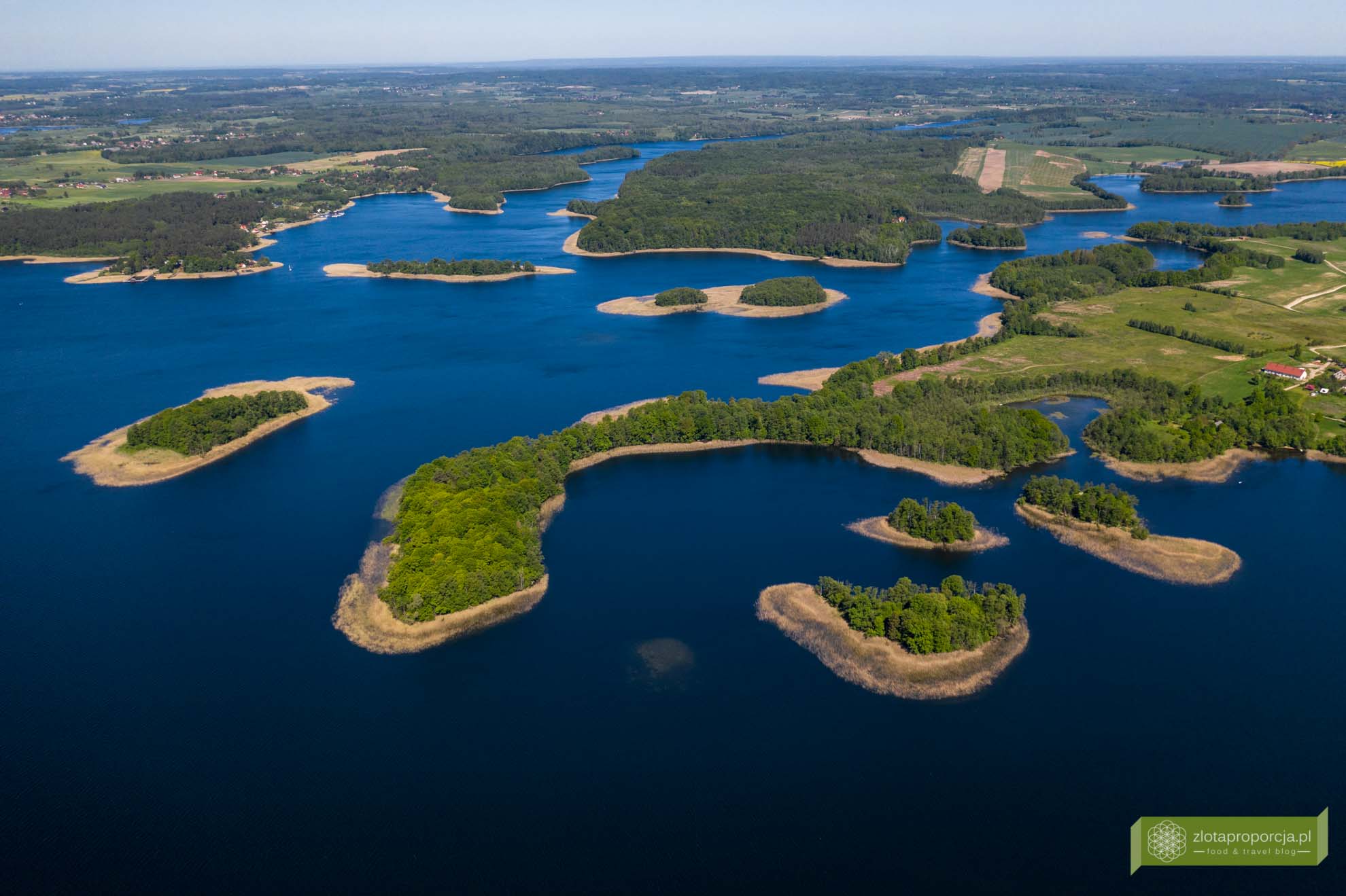 Linia brzegowa jeziora jest naprawdę imponująca – ma prawie 55 kilometrów długości. Na jeziorze znajduje się także aż 19 mniejszych i większych wysepek. Największe z nich to Duża Wyspa, Mała Wyspa, Duchów, Kaczy Ostrów oraz Złota Wyspa. Z perspektywy brzegu czasem trudno jest dostrzec czy po przeciwnej stronie jeziora widzimy malowniczą zatoczkę czy też małą wyspę.