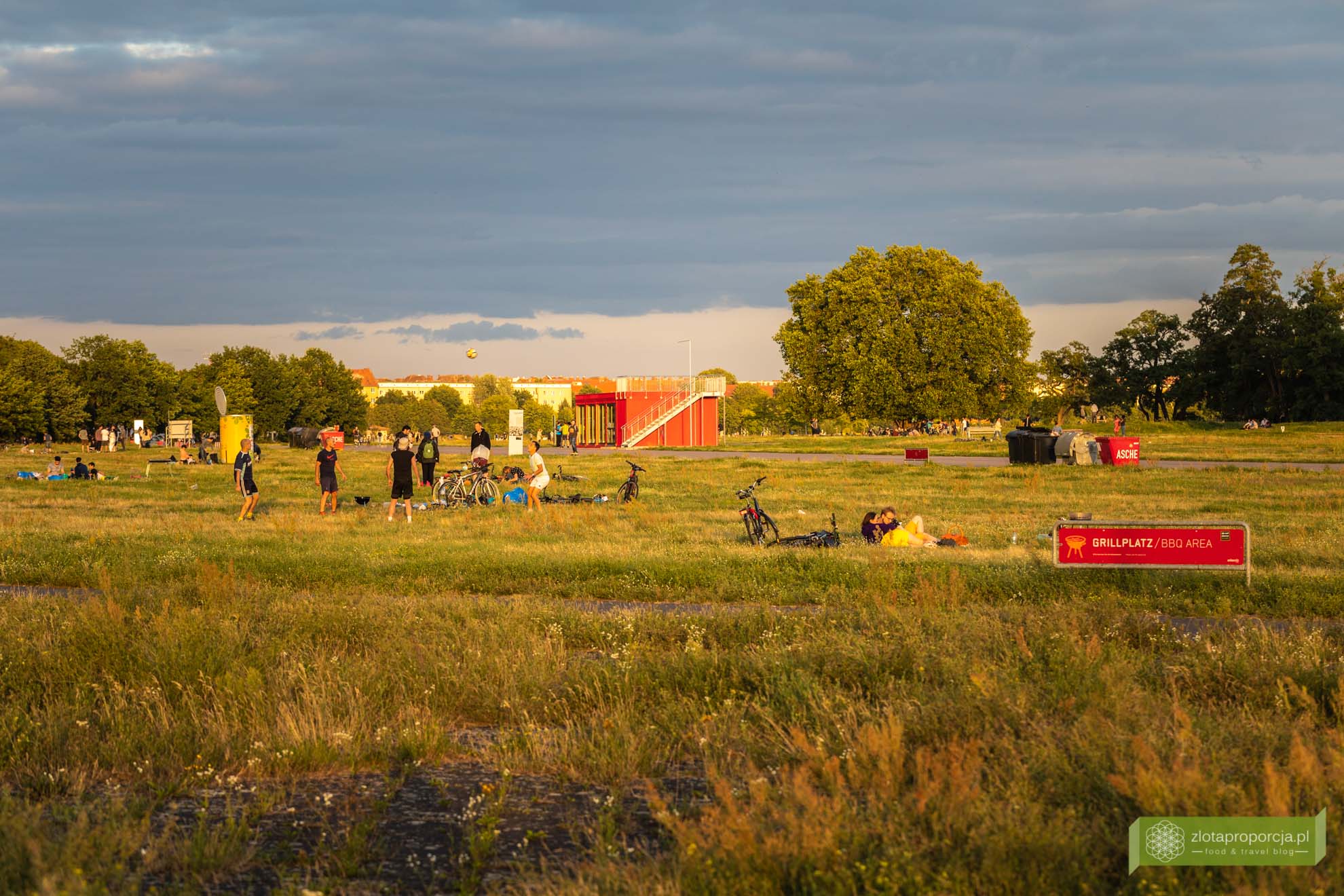 Dziś na dawnej płycie lotniska i pasach startowych Berlińczycy spotykają się, jeżdżą na rowerze, rolkach, grają w piłkę, grillują czy też puszczają latawce. Trafiliśmy nawet na mini koncert bębnowy, a kawałek dalej wieczór umilał DJ z mikserem na motorze. Wszystkie aktywności są dozwolone, oczywiście w granicach przyzwoitości. Jest wydzielone miejsce do grillowana oraz ogródki społeczne, w których każdy mieszkaniec może mieć swoją grządkę. Park otwarty jest codziennie w godzinach 6.00-21.30. Dobrym momentem na odwiedzenie Tempelhofer Feld jest zachód słońca, wtedy słońce chowa się centralnie za budynkiem dawnego lotniska, a park tętni życiem.