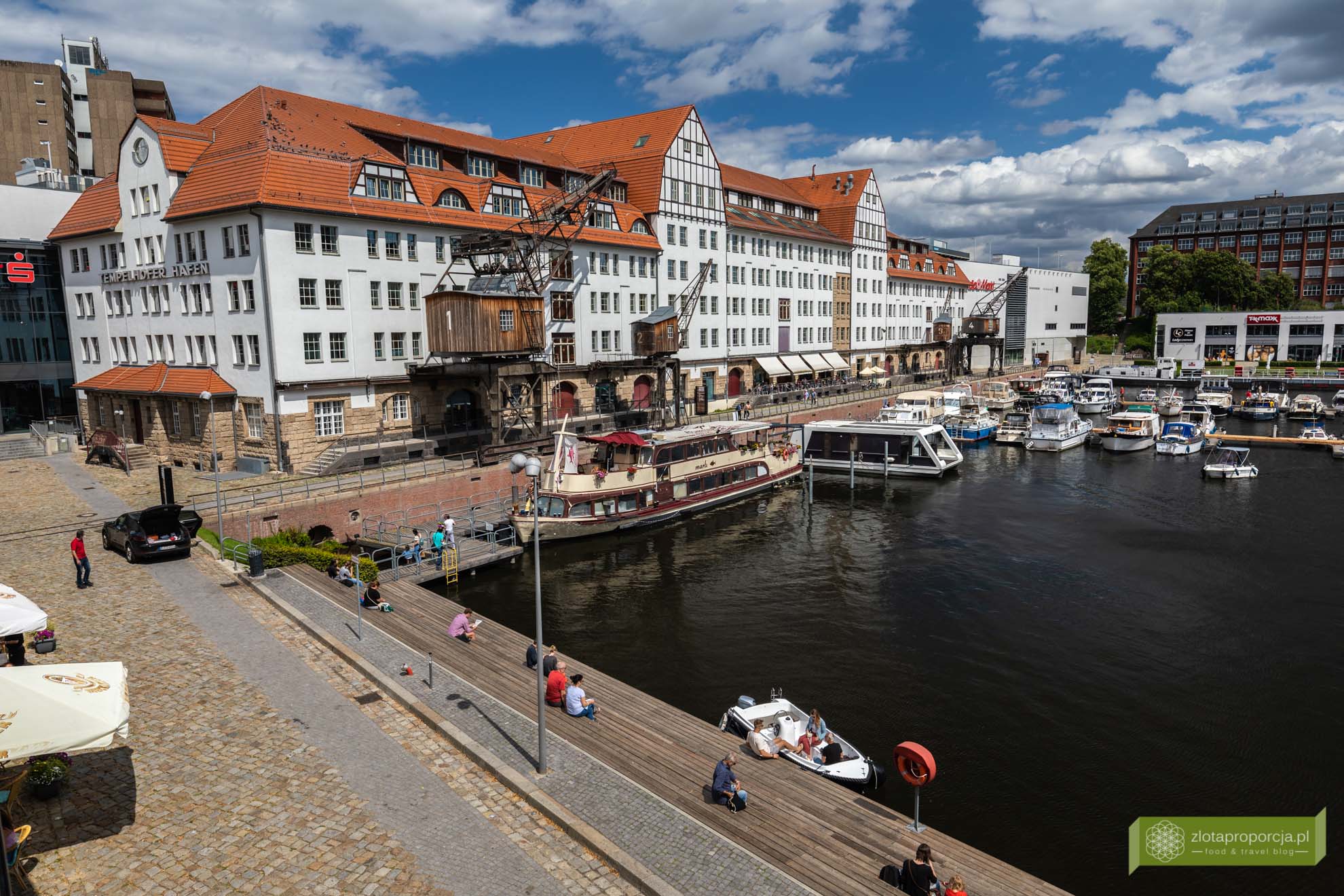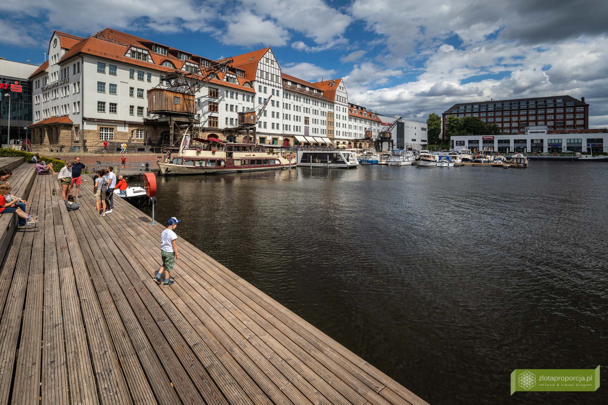 Dziś o latach świetności tego miejsca przypominają trzy zabytkowe drewniane dźwigi z początku XX wieku. Wkomponowano je w projekt przebudowy przystani. W 2009 roku na terenie dawnych magazynów zbudowano bowiem pierwsze centrum handlowe w Berlinie położone nad brzegiem wody. Można tu zrobić zakupy, oczami wyobraźni zobaczyć jak wyglądał kiedyś przeładunek towarów, po czym napić się kawy, zjeść lunch lub po prostu odpocząć z widokiem na wodę.