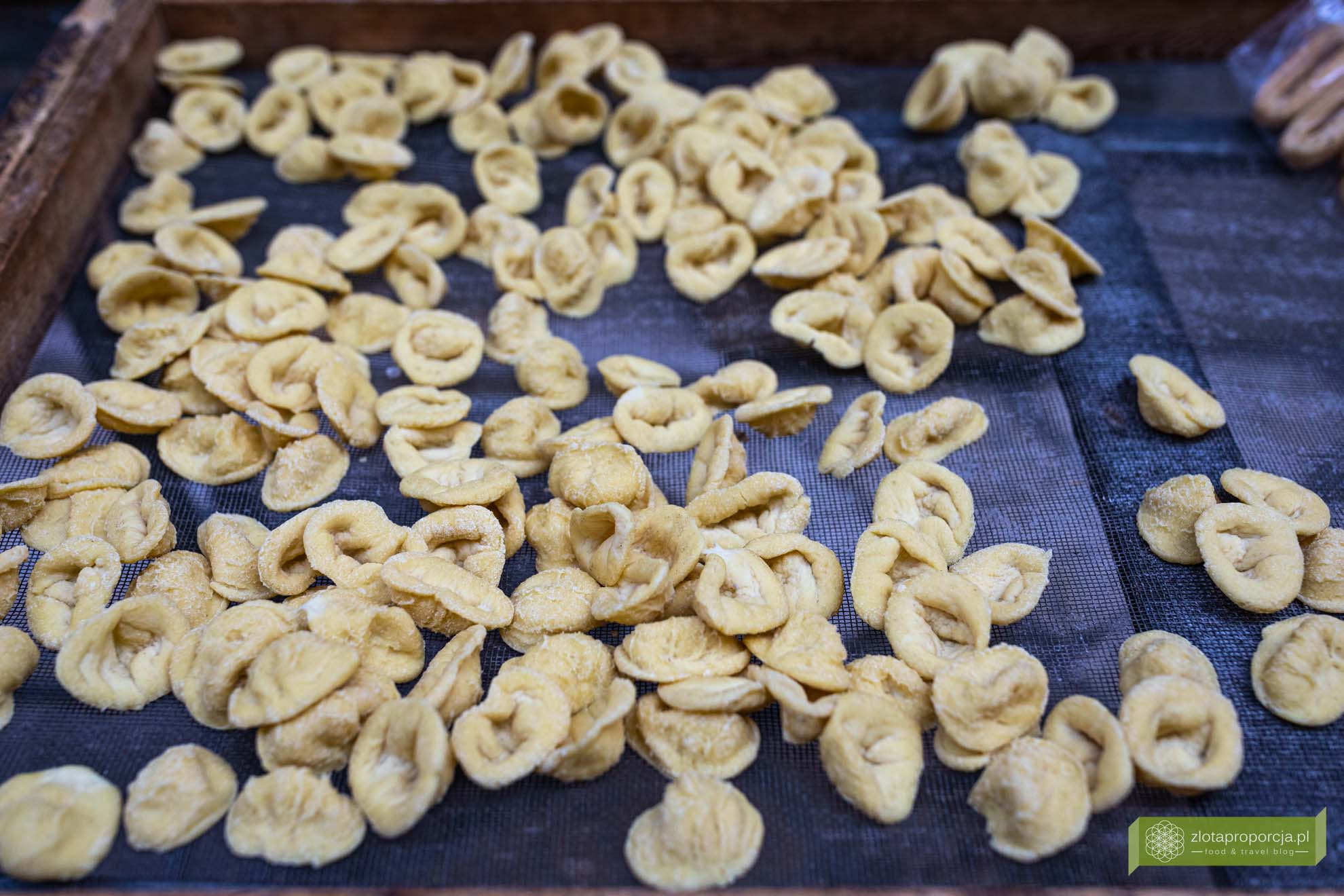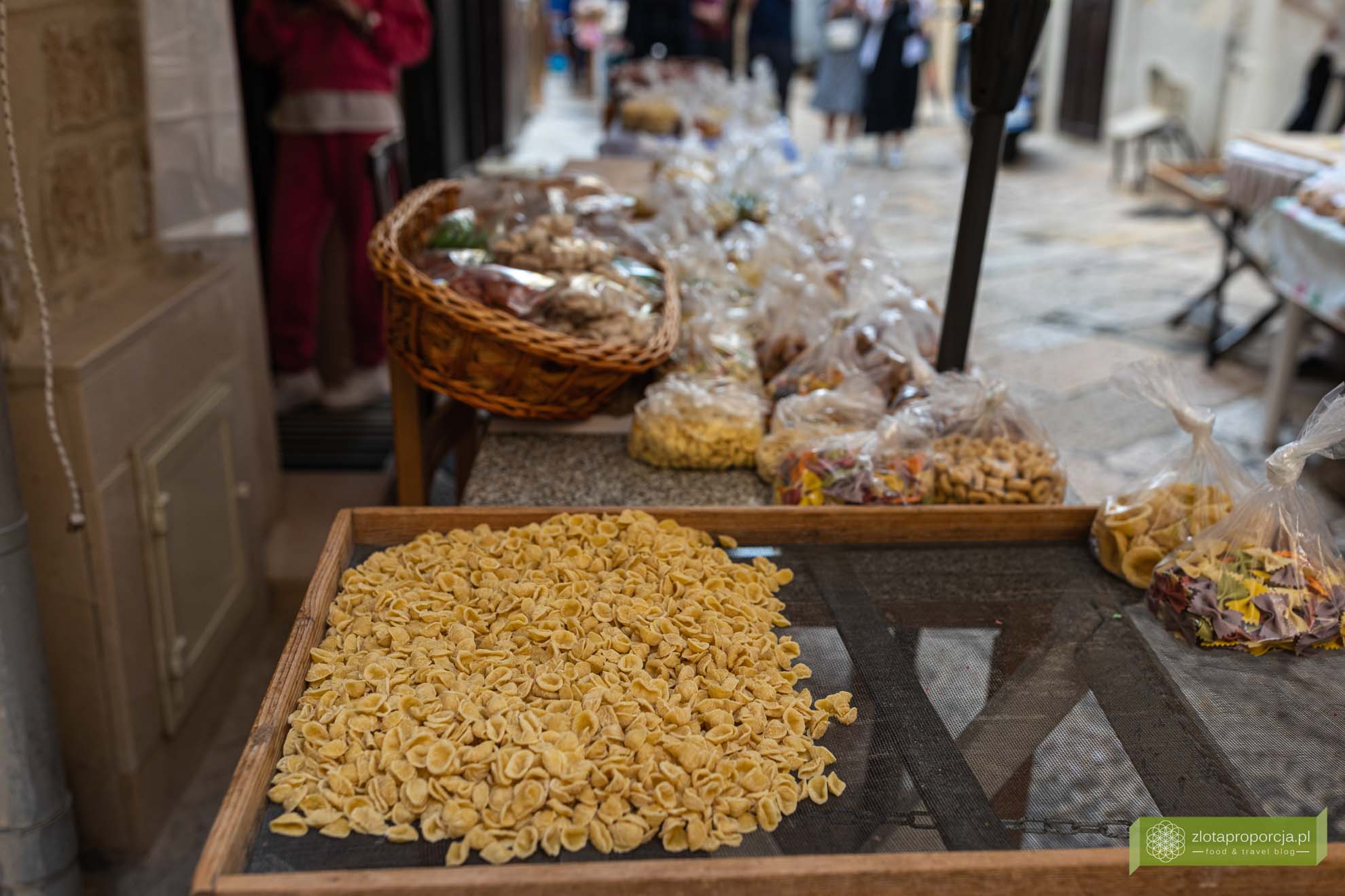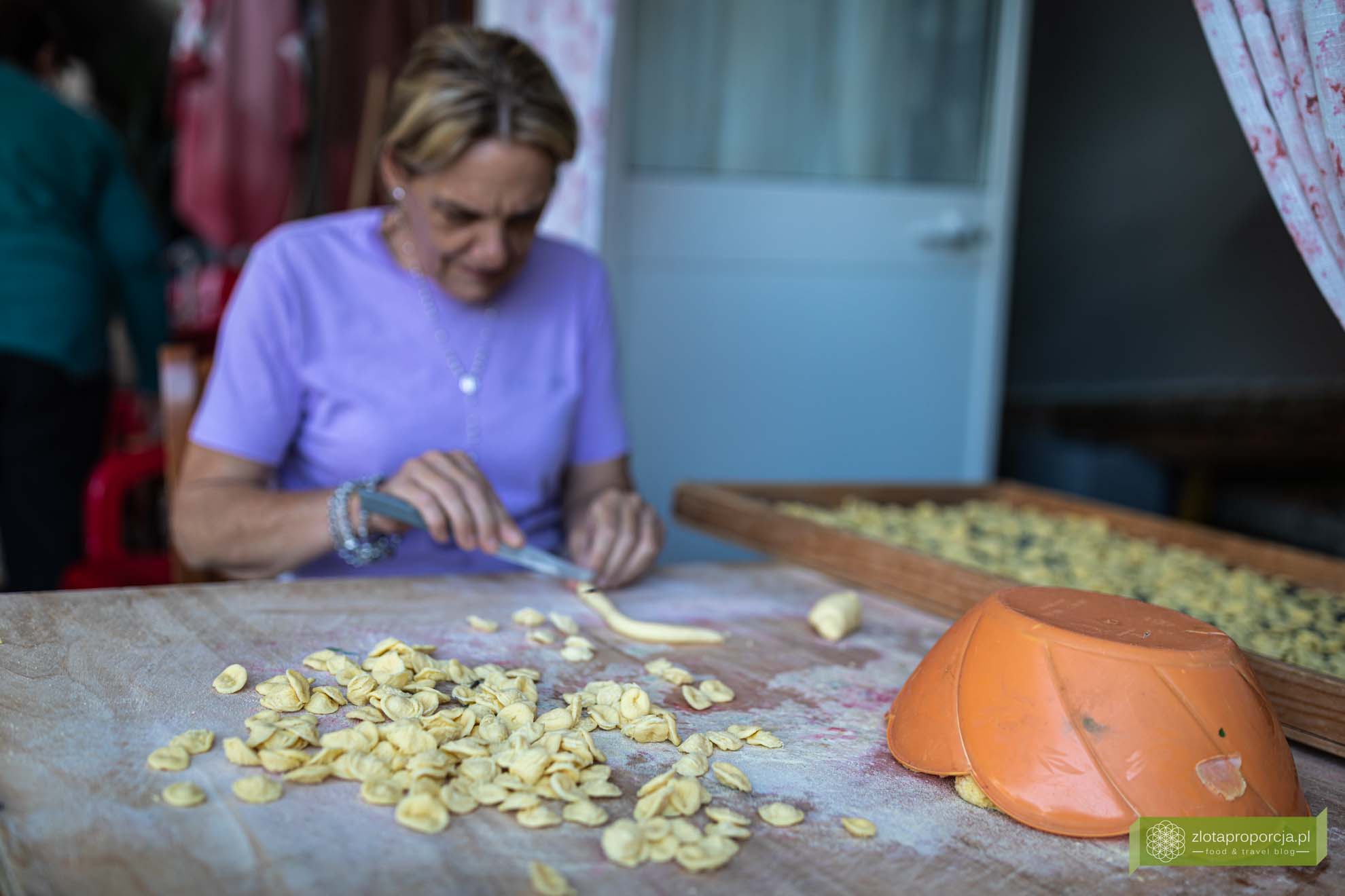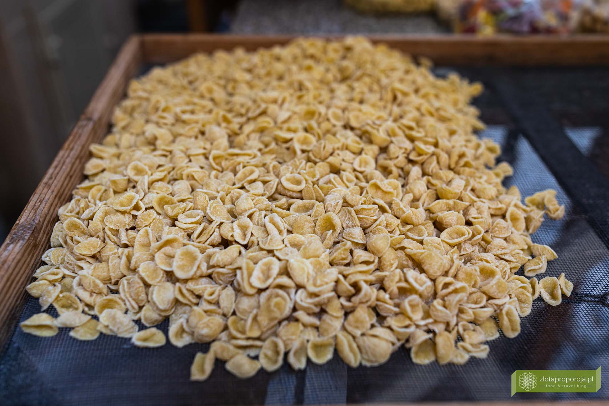 Orecchiette jest typowym makaronem w Apulii, ale także w sąsiadującej z nią i mniej znanej Bazylikacie (O Bazylikacie przeczytacie więcej w tym tekście: Atrakcje Bazylikaty. Bazylikata to nie tylko Matera). Kształt tego makaronu przypomina małe uszy, od tego wywodzi się jego nazwa. Po włosku orecchie to uszy. Orecchiette formuje się za pomocą noża i kciuka. Charakterystyczną cechą tego makaronu jest także chropowata powierzchnia na wierzchu uszka dzięki czemu lepiej chłoną różnej maści sosy.