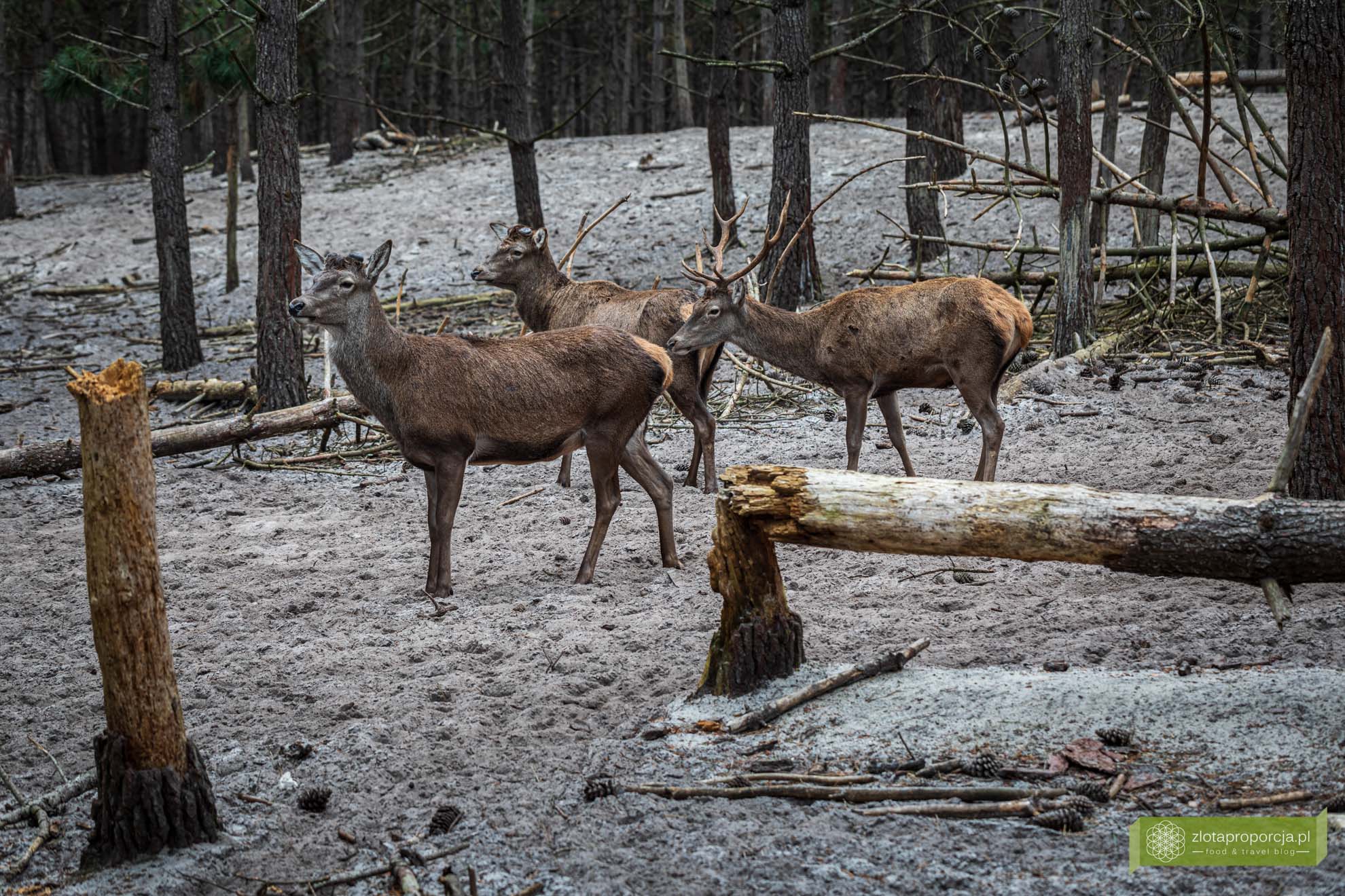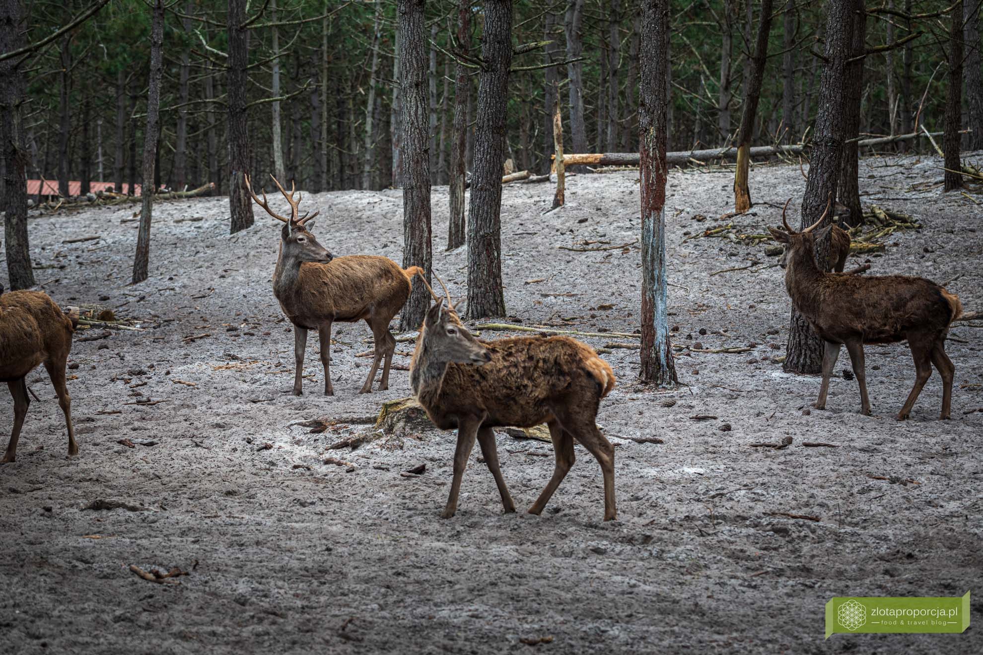Jadąc na plażę ujrzeliśmy z samochodu kilkanaście jeleni. Zaparkowaliśmy na poboczu i podeszliśmy do ogrodzenia. Jelenie zupełnie się nie bały i podeszły całkiem bliżej nas, po czym uciekły w inną stronę parku. Kolejnego dnia jadąc tę samą trasę nie widzieliśmy ani jednego jelenia. Musiały być w zupełnie innej części tego sporego rezerwatu.