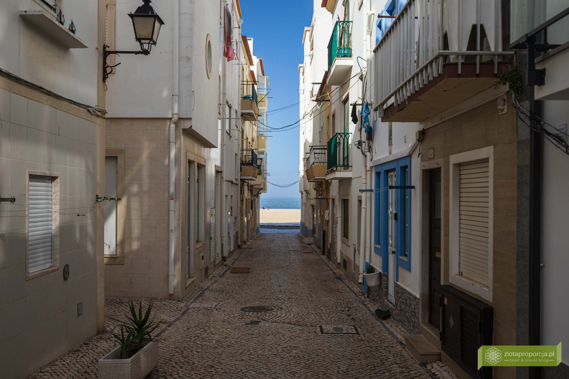 W Nazare zatrzymaliśmy się w dolnym miasteczku bardzo blisko tej pięknej, piaszczystej plaży, do której mieliśmy kilkadziesiąt metrów pieszo. I właśnie tę cześć miasteczka polecamy na nocleg. W zasięgu jest wszystko, co potrzeba – plaża, restauracje, targ, supermarkety, sklepiki oraz ścieżka i kolejka do górnego Nazare. Tu toczy się wieczorne życie, z drugiej strony w labiryncie uliczek jest cicho i przyjemnie.