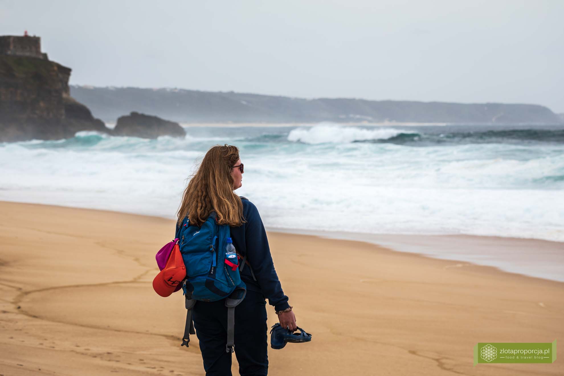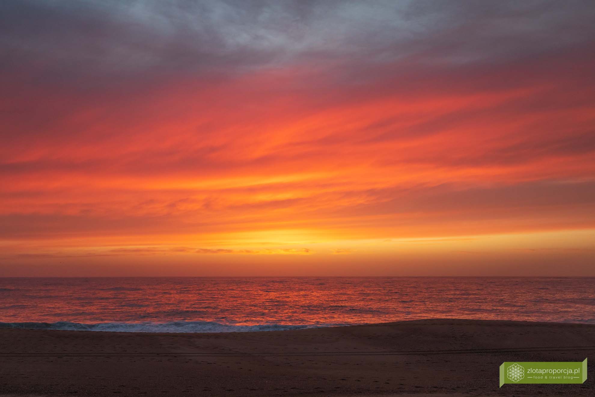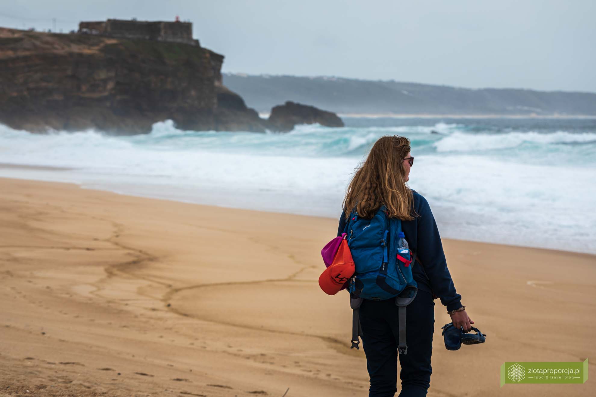 Praia de Nazare była pierwszym miejscem, które odwiedziliśmy w miasteczku. Przyjechaliśmy do Nazare późnym popołudniem, zostawiliśmy bagaże i od razu poszliśmy na spacer wzdłuż plaży. Zostaliśmy na niej do zachodu słońca, który zarówno tego, jak i kolejnego dnia był fenomenalnym spektaklem. To idealne miejsce do jego podziwiania, bowiem słońce zachodzi niemalże równolegle do plaży, także zachody słońca na Praia de Nazare to prawdziwa uczta dla oczu!