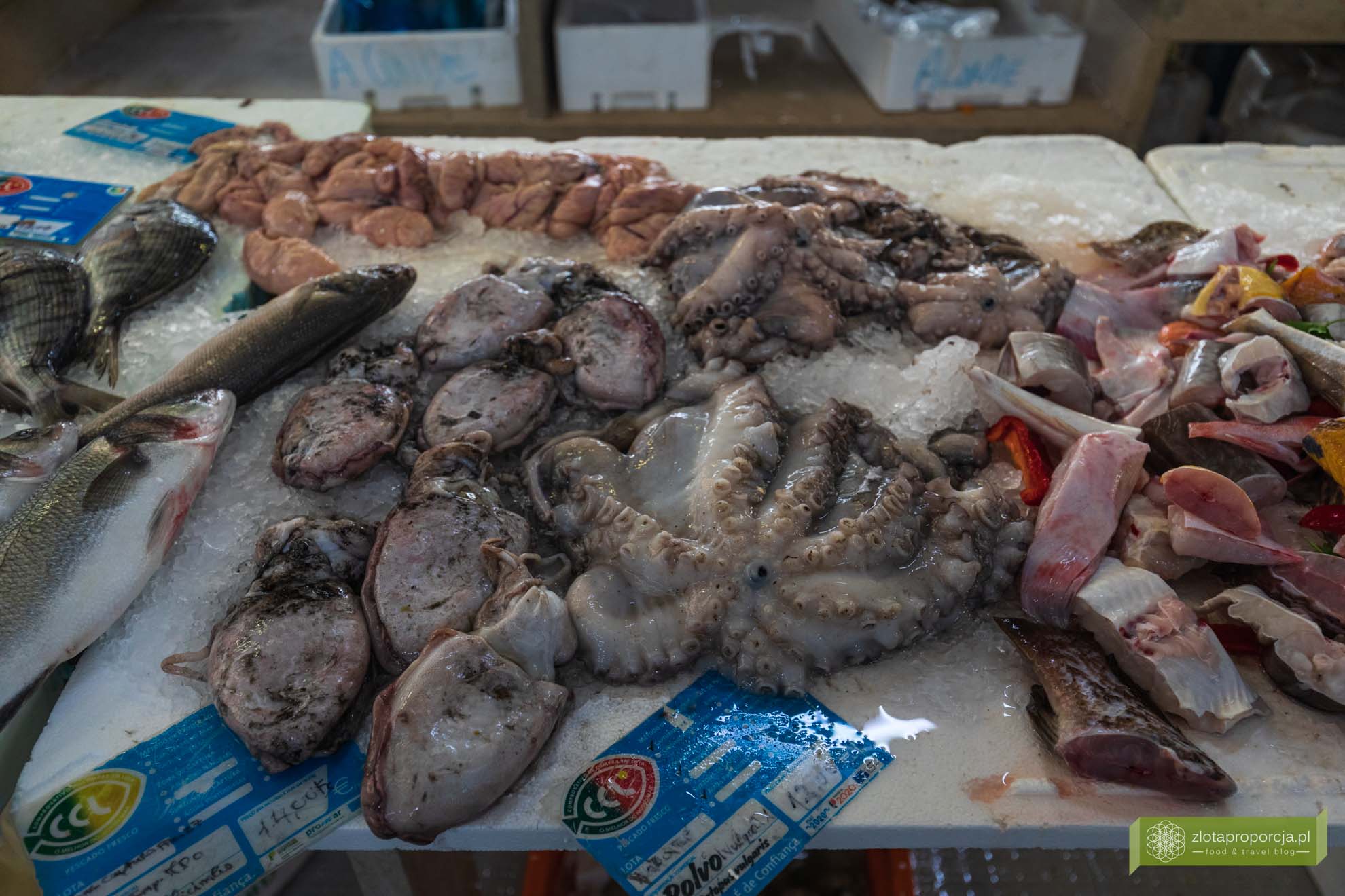 Targ suszonych ryb to nie jedyny targ w miasteczku. W dolnym Nazare jest także bardzo ciekawe lokalne mercado, które także polecamy odwiedzić. Jest to najbardziej autentyczny targ jaki odwiedziliśmy podczas tej podróży po Portugalii. Na targu kupiliśmy znakomite krewetki, które usmażyliśmy na kolację z czosnkiem, winem i natką pietruszki. Natkę i czosnek również kupiliśmy na targu, jest tam ogromny wybór owoców i warzyw. Są także sery, wędliny, pieczywo, słodkie wypieki czy też oliwki. Ceny były naprawdę przyzwoite!