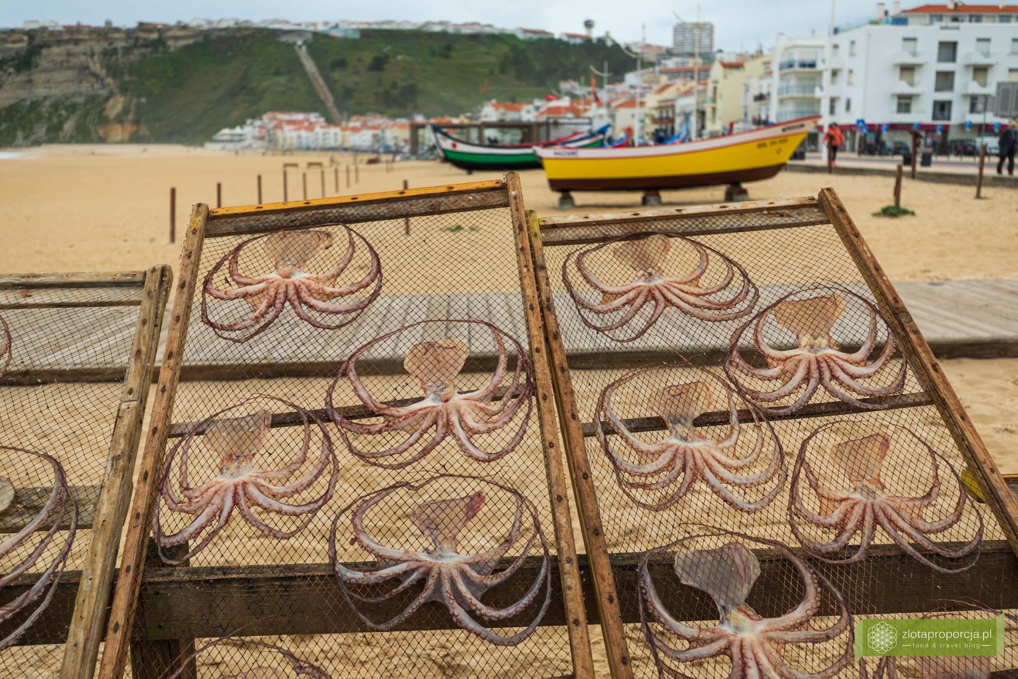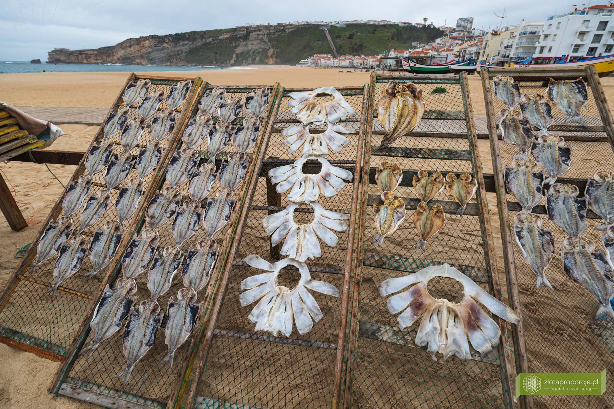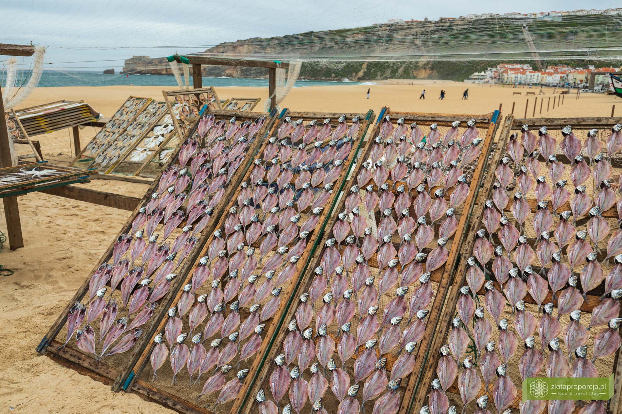 Każdy może podejść i zobaczyć z bliska jak wygląda proces suszenia. Na plaży rozstawione są specjalne rusztowania z siatką, tzw. paneiros. Ustawione są one w kierunku południowym. Na tych rusztowaniach rozłożone są nie tylko ryby, ale także owoce morza. Widzieliśmy suszące się makrele, sardynki, ośmiornice czy też kałamarnice. Suszenie trwa zazwyczaj od 2 do 3 dni, ale wszystko zależy od warunków atmosferycznych. Z tego co zaobserwowaliśmy na noc rusztowania są przykrywane i pozostawiane na plaży.