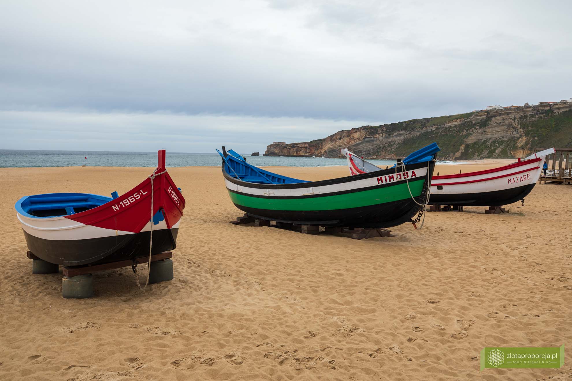 Plaża jest spektakularna. Jest szeroka, piaszczysta i bardzo długa, ma aż 1,5 kilometra długości. Wzdłuż plaży poprowadzono deptak, przy którym znajdziecie masę barów, restauracji, lodziarni, sklepików i kawiarni. Warto przespacerować się plażą aż do latarni morskiej i wejścia do portu. Na Praia de Nazare znajdziecie także targ suszonych ryb i wystawę tradycyjnych łodzi, o których piszemy poniżej.