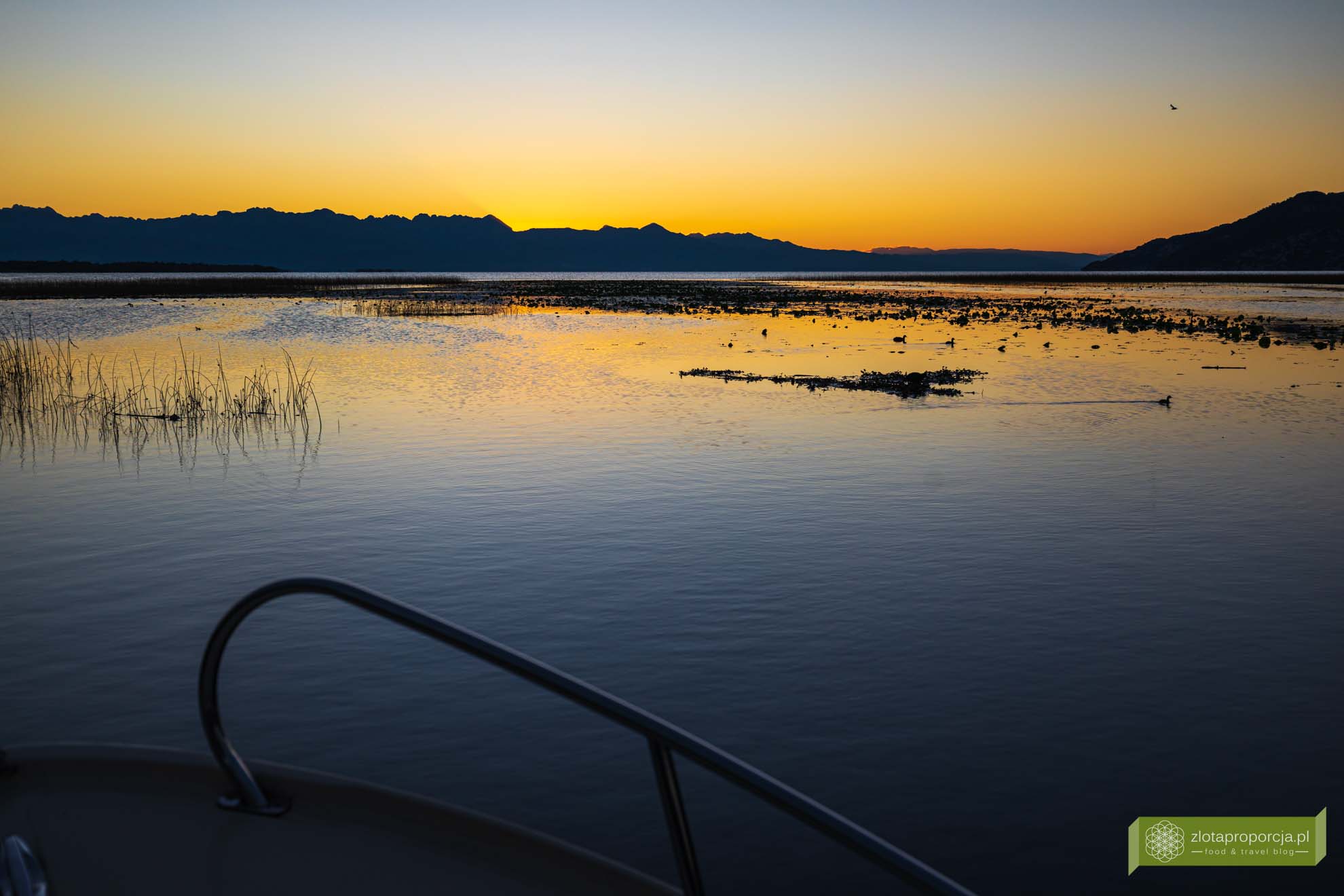 Tym razem podeszliśmy do Jeziora Szkoderskiego zupełnie inaczej. Wybraliśmy kameralny rejs organizowany przez właściciela agroturystyki, w której się zatrzymaliśmy. Wypłynęliśmy na jezioro przed wschodem słońca. Pod koniec września na szczęście wschód był dosyć późno, bowiem przed godziną 7.00. Widzieliśmy jak słońce wschodzi nad jeziorem i zmienia jego barwy oraz jak o poranku budzi się jego wodne życie. Płynęliśmy jeziorem i mniejszymi kanałami pośród przekwitających już lilii wodnych, trzcin i innej roślinności.