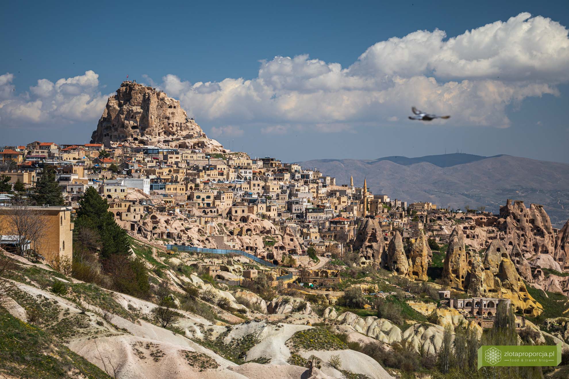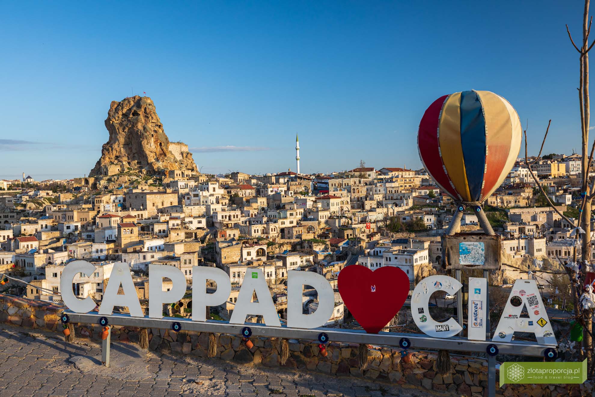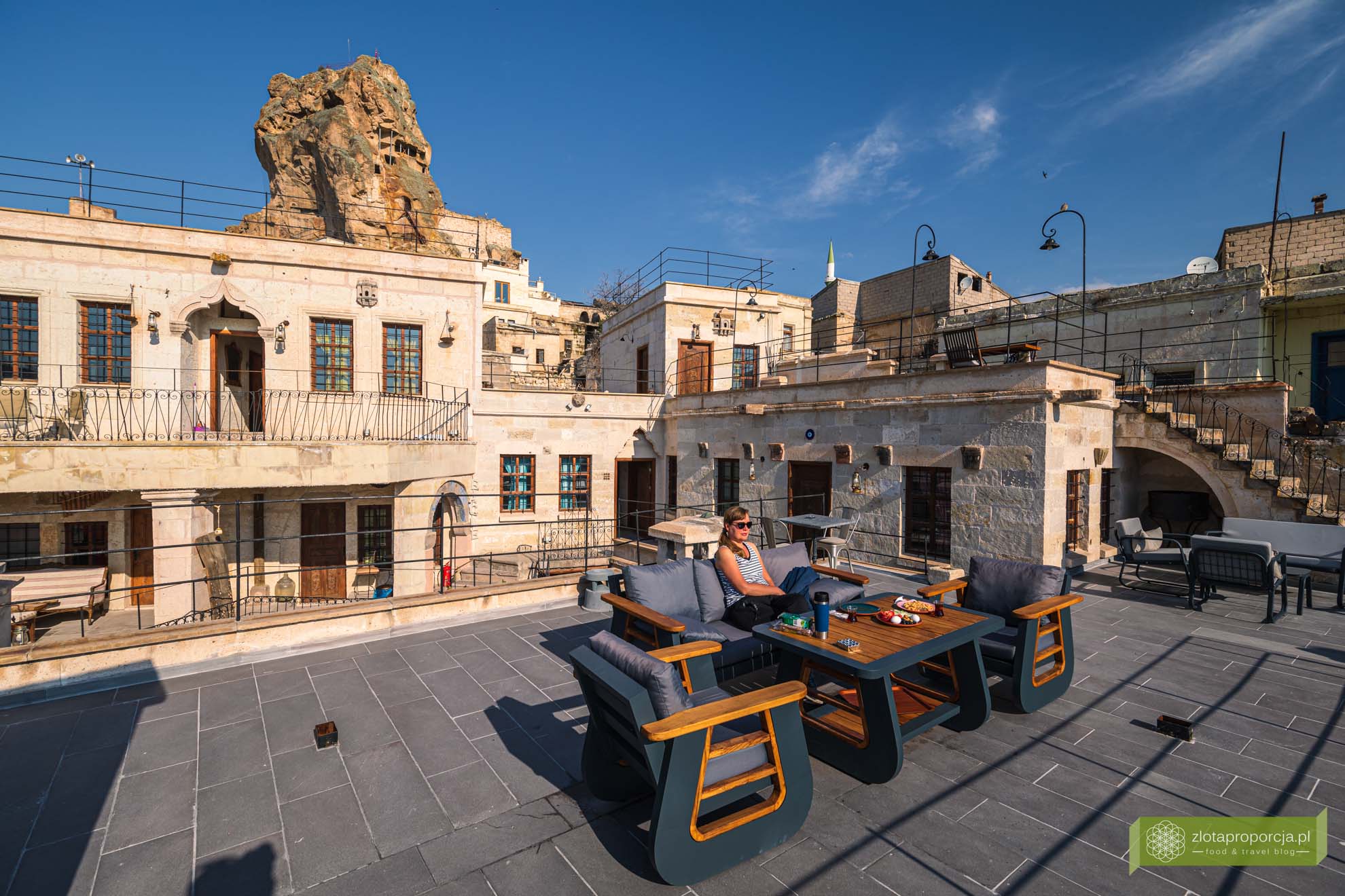 W Kapadocji naszą bazą było miasteczko Ortahisar o wiele mniej turystyczne niż Göreme, które możemy porównać do zakopiańskich Krupówek. Göreme to masowa turystyka pełną gębą, więc jeżeli szukasz spokoju, to polecamy wybrać zdecydowanie inną lokalizację. Nam Ortahisar bardzo się podobał, jest położony blisko dolin, punktów widokowych dobrych na zachód i wschód słońca. W miasteczku znaleźliśmy też dwa pyszne miejsca z prostą, autentyczną kuchnią. Nasz hotel Cappadocia Eagle Cave Inn bardzo nam się podobał. Był kameralny, bardzo czysty, klimatyczny oraz wykończony ze smakiem i dbałością o detal. Bardzo dobre śniadania jadaliśmy na jednym z kilku tarasów. Przy hotelu było też miejsce na bezpłatny parking dla gości. Za pokój ze śniadaniem płaciliśmy w kwietniu 80 euro za 1 noc.