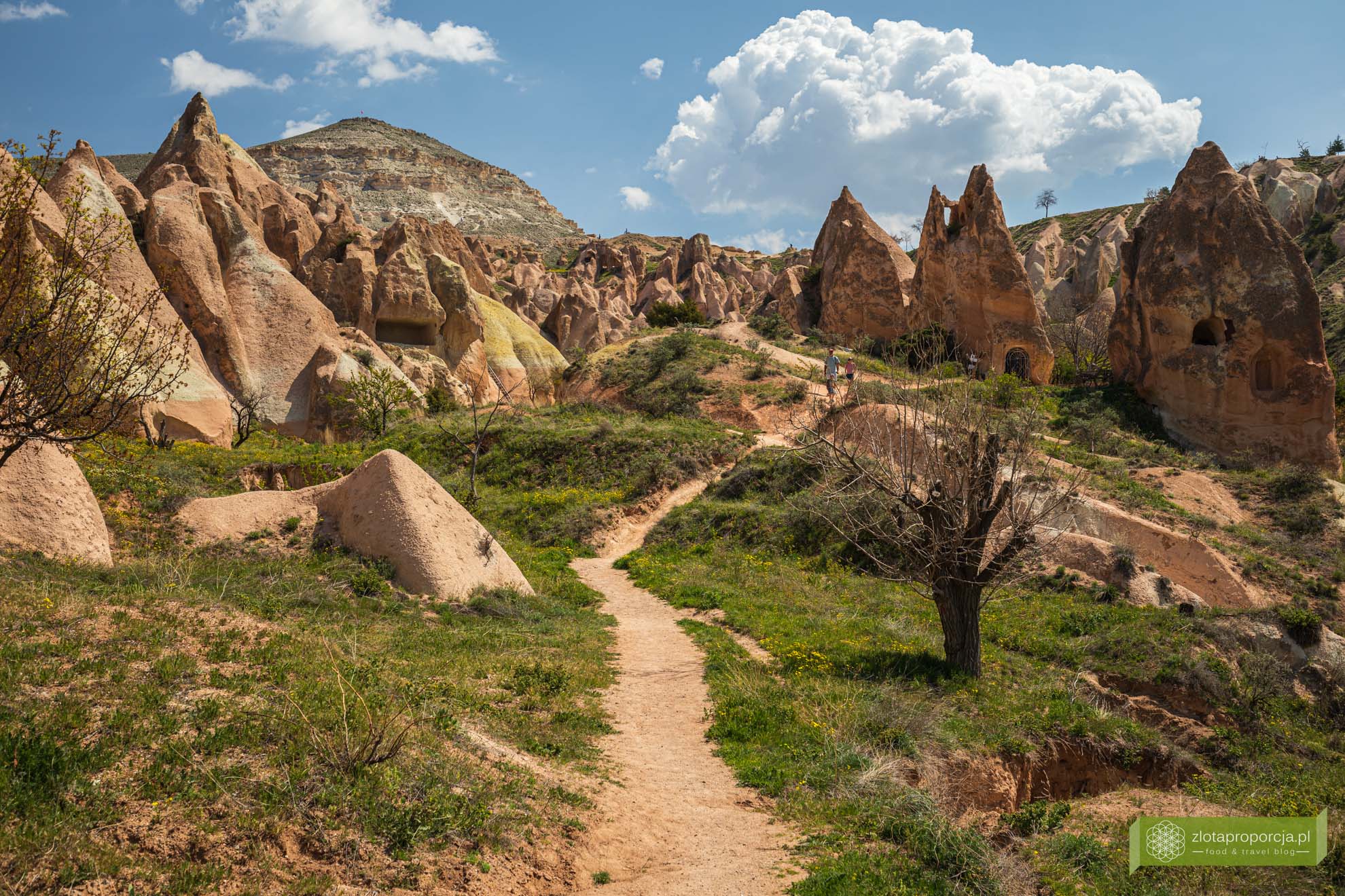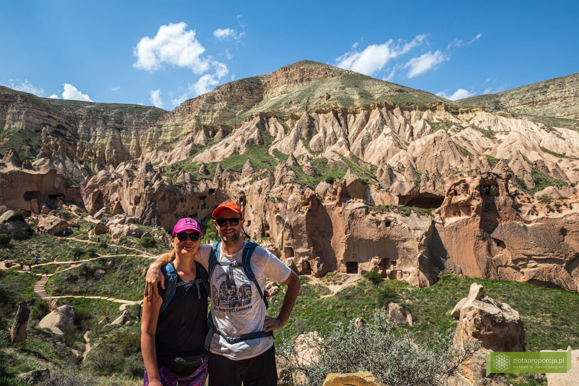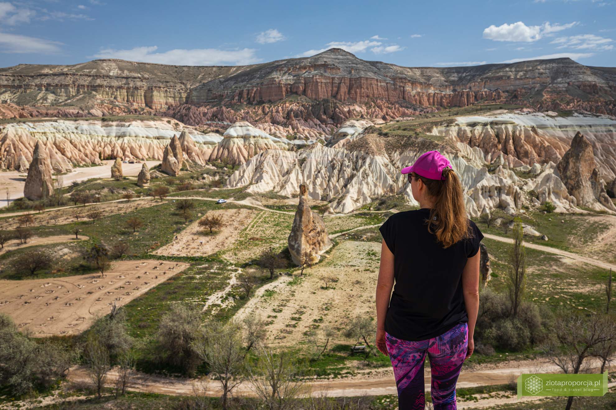 W Kapadocji naszą bazą było miasteczko Ortahisar o wiele mniej turystyczne niż Göreme, które możemy porównać do zakopiańskich Krupówek. Göreme to masowa turystyka pełną gębą, więc jeżeli szukasz spokoju, to polecamy wybrać zdecydowanie inną lokalizację. Nam Ortahisar bardzo się podobał, jest położony blisko dolin, punktów widokowych dobrych na zachód i wschód słońca. W miasteczku znaleźliśmy też dwa pyszne miejsca z prostą, autentyczną kuchnią. Nasz hotel Cappadocia Eagle Cave Inn bardzo nam się podobał. Był kameralny, bardzo czysty, klimatyczny oraz wykończony ze smakiem i dbałością o detal. Bardzo dobre śniadania jadaliśmy na jednym z kilku tarasów. Przy hotelu było też miejsce na bezpłatny parking dla gości. Za pokój ze śniadaniem płaciliśmy w kwietniu 80 euro za 1 noc.