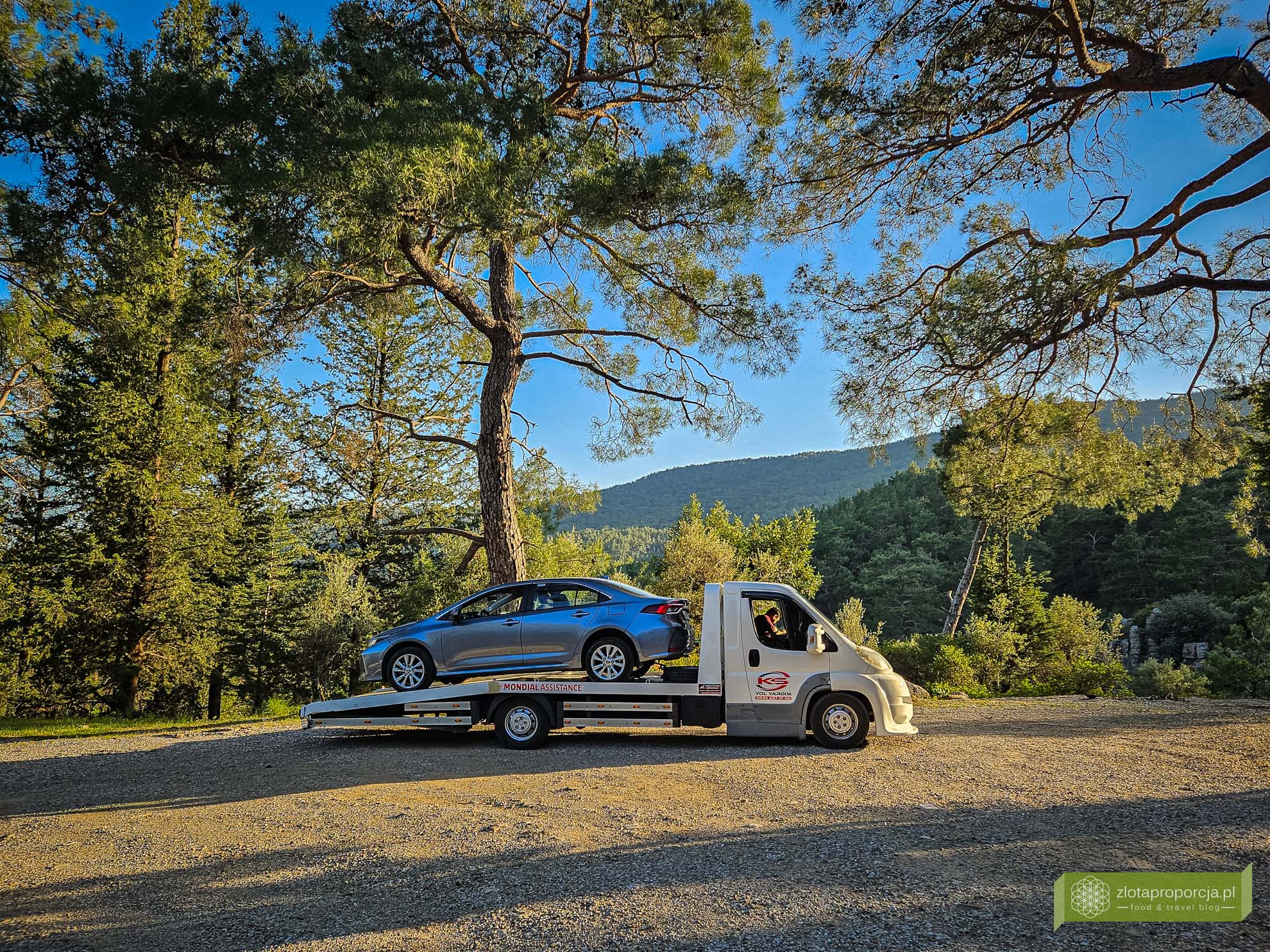 Nasze problemy na drodze były zupełnie innej natury. Trzeciego dnia podróży w wypożyczonym samochodzie nagle padła cała elektronika. Po zaparkowaniu samochodu na parkingu przy punkcie widokowym na Kanion Köprülü elektronika po prostu przestała działać. Nie dało się uruchomić silnika, zamknąć okna czy też zwolnić hamulca ręcznego. Było to o tyle zaskakujące, że samochód był całkiem nowy, miał przejechane niecałe 8 tyś km i wcześniej nie zapaliła się żadna lampka awaryjna. Zgłosiliśmy awarię do Avec, z którego wypożyczaliśmy samochód i który miał naprawdę dobre opinie. Pomoc miała przyjechać do 1 godziny, ale laweta pojawiła się po 3 godzinach. Przez kolejne 1,5 godziny czekaliśmy na decyzję Avec, co zrobić z samochodem z zaciągniętym ręcznym. Nic więcej nie wiedzieliśmy, ponieważ kierowca mówił tylko po turecku i porozumiewaliśmy się tłumaczem googlowym. W końcu zgodzili się na transport lawetą. My także musieliśmy pojechać lawetą do wypożyczalni na lotnisku po nowy samochód. Był to przeciwny kierunek, niż ten w którym jechaliśmy.