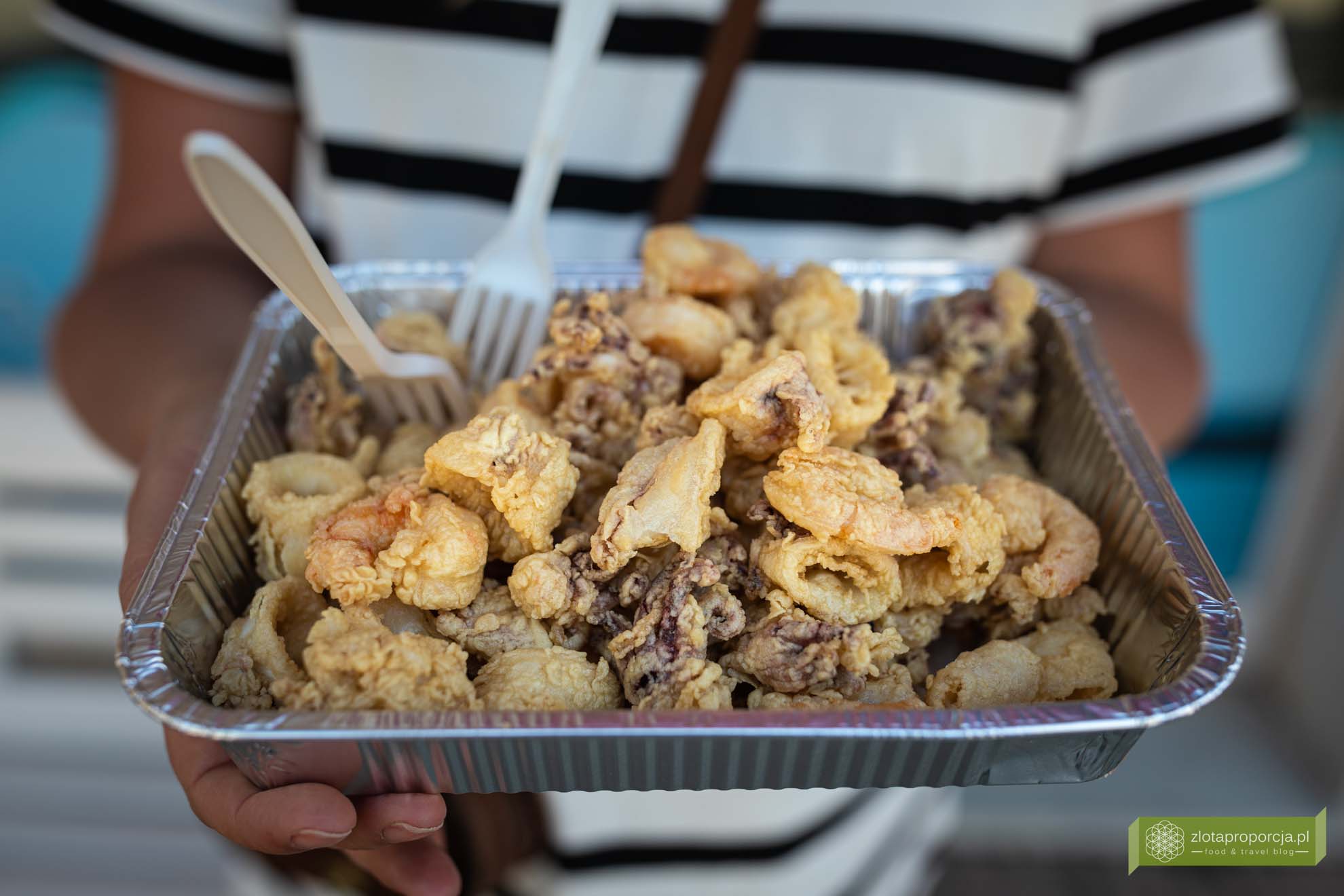 Polecamy także spróbować genialnego lokalnego fritto misto. Kiedy jesteśmy w Caorle zawszę odwiedzamy sklep rybny o nazwie Pescheria (pinezka do Google Maps). W sklepie kupicie jeszcze gorące fritto misto, które kosztuje 19 euro za kilogram. Najlepiej smakuje oczywiście na miejscu, ale pamiętaj, że w sklepie dostaniesz widelczyki, ale cytrynę musisz zadbać sam. Porcja za 10 euro była dla naszej dwójki w zupełności wystarczająca, aby się najeść! W sezonie fritto misto jest smażone na świeżo przed i po przerwie na siestę. Poza sezonem tylko w godzinach przedpołudniowych.