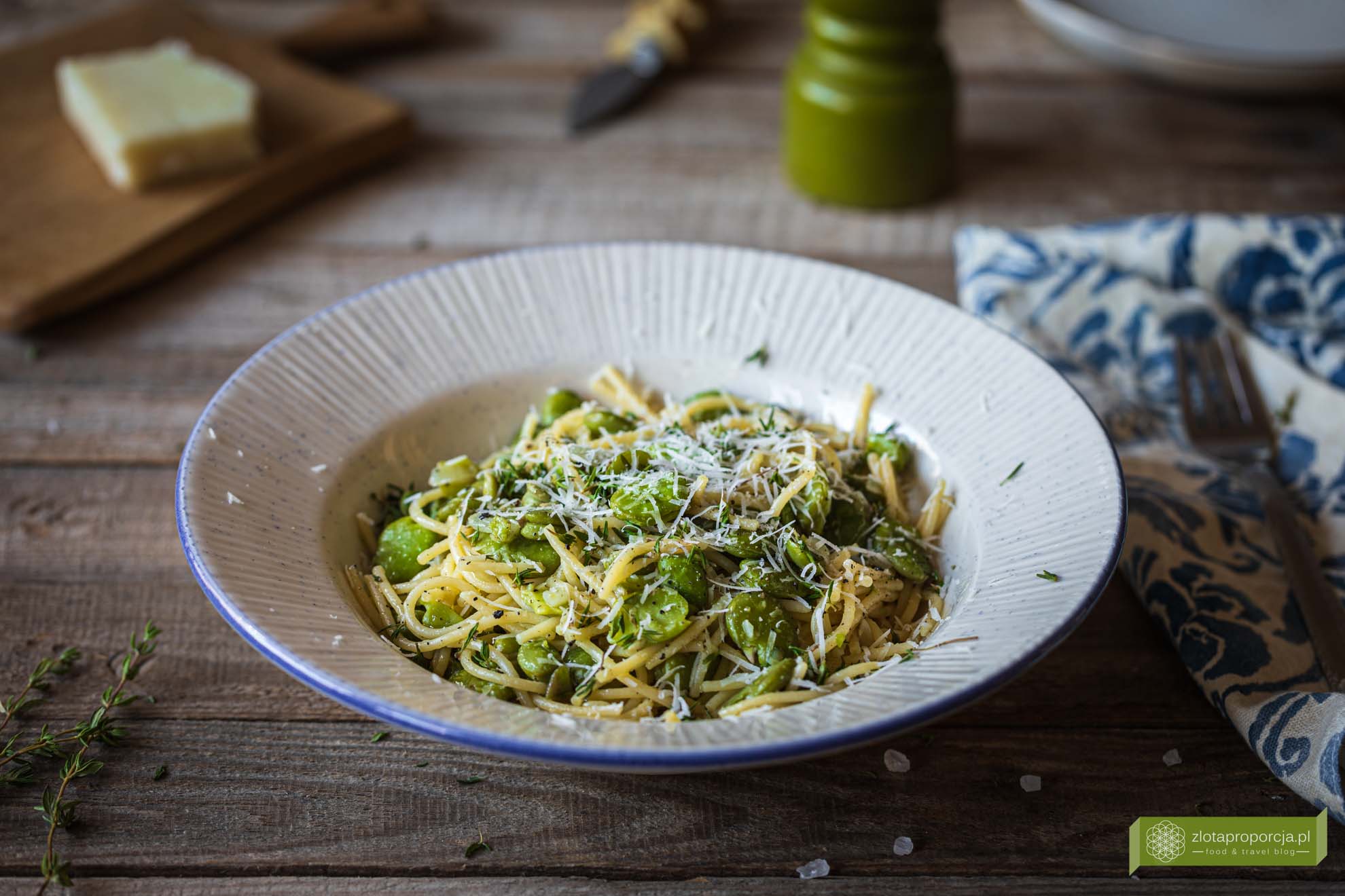 Przepis na makaron z bobem, tymiankiem i pecorino
