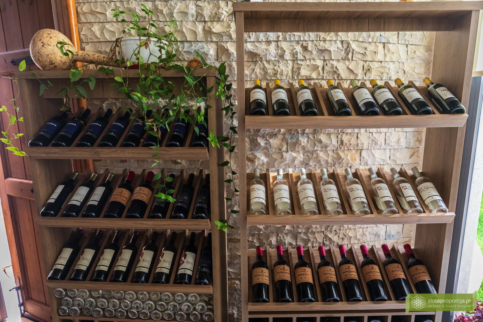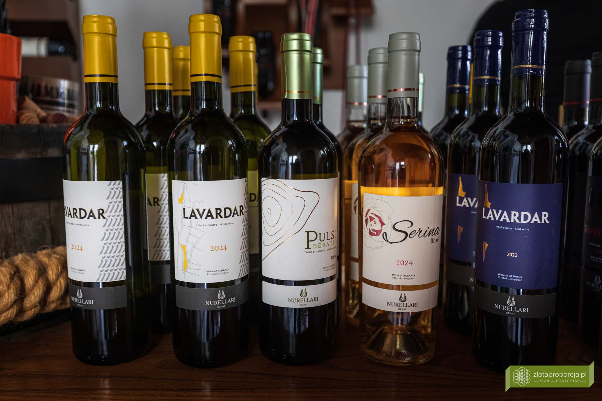 Droga choć kręta, jest też bardzo malownicza! Prowadzi doliną pośród winnic i gajów oliwnych położonych na jej zboczach i na dnie doliny. Polecamy zajechać do winnicy Nurellari, która znajduje się praktycznie po drodze. To jedna z dwóch najbardziej znanych winnic w okolicy Beratu. Poza sezonem lepiej jest zadzwonić, aby upewnić się czy ktoś będzie w sklepie lub umówić się na degustację. My mieliśmy trochę szczęścia – przyjechaliśmy bez zapowiedzi i zastaliśmy na miejscu właściciela przygotowującego się do degustacji. Porozmawialiśmy o winach, spróbowaliśmy je i kupiliśmy do domu to co nam najbardziej smakowało.