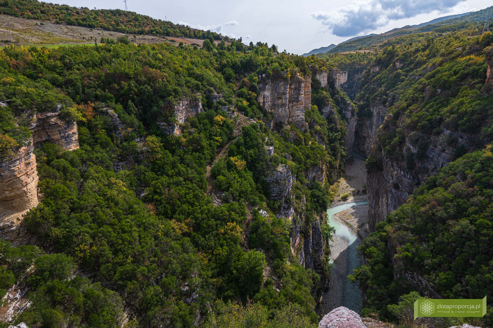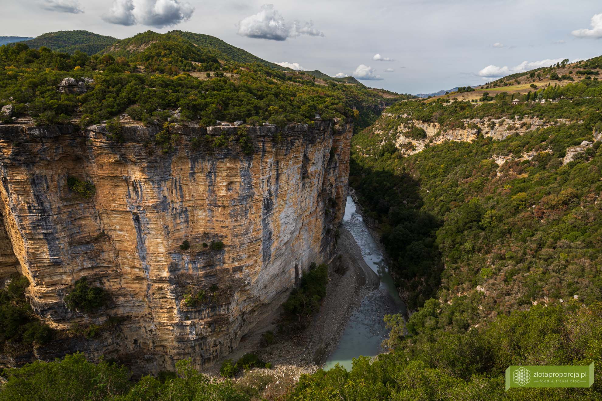 Kanion Osumi, który przecina góry Tomorr, ma aż 26 kilometrów długości. Rzeka Osumi wije się pomiędzy niemalże pionowymi skalnymi ścianami mierzącymi ponad 100 metrów wysokości. Ponoć w niektórych miejscach ściany osiągają nawet 450 metrów wysokości, ale my tak wysokich nie widzieliśmy. Te, które zobaczyliśmy i tak zrobiły na nas ogromne wrażenie!